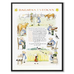 Poster med en vacker illustration "Dagarna i veckan" från Elsa Beskows barnbok Årets Saga som först publicerades år 1927. Boken beskriver veckodagar och årstider som skildras genom barn och vardagliga sysslor.