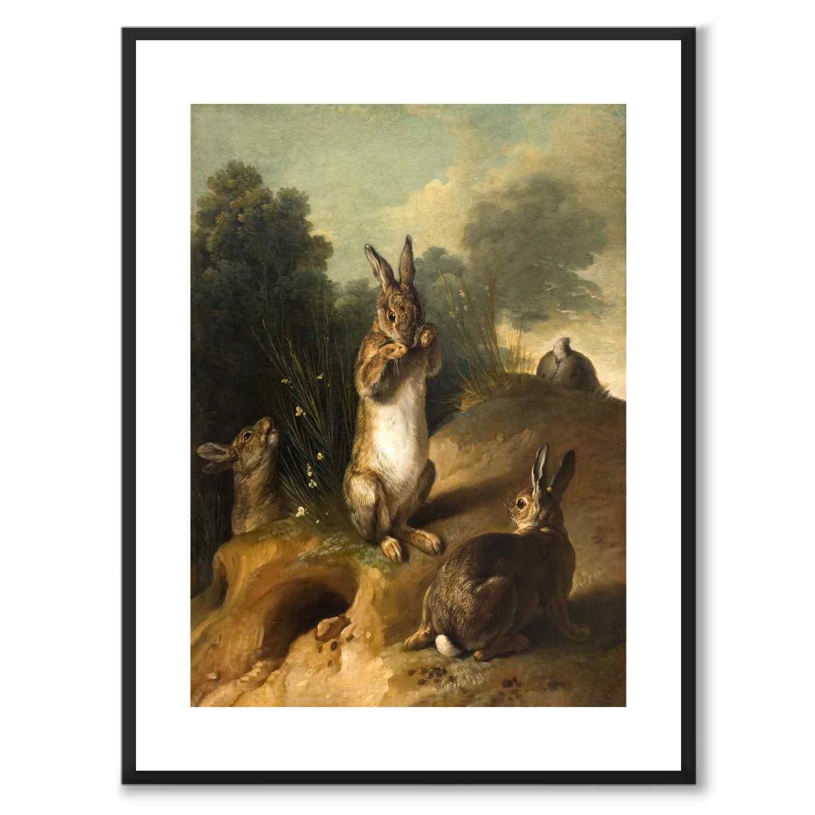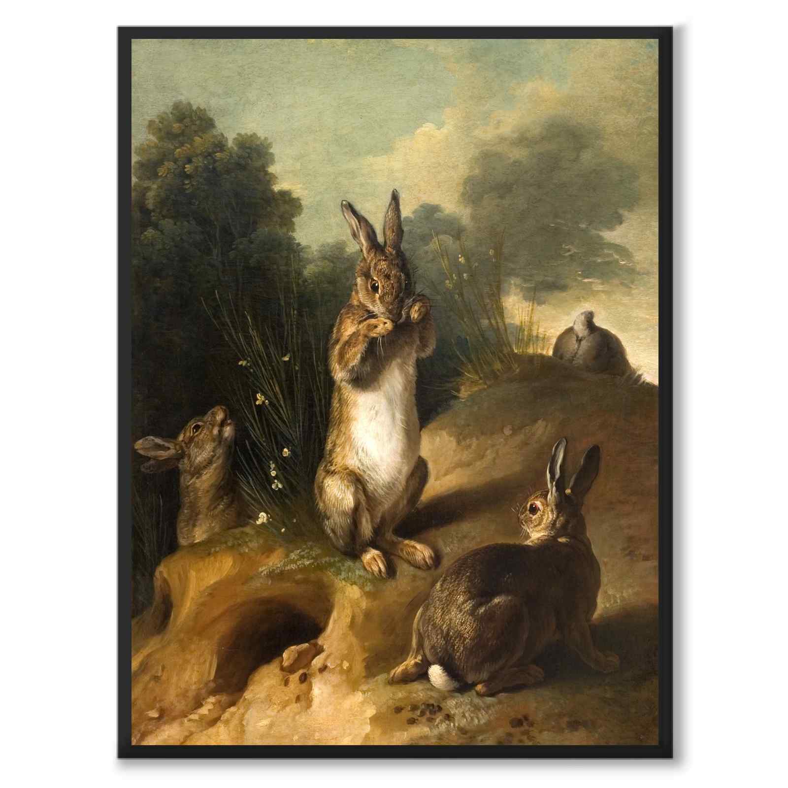 Poster with the painting "Rabbits" by the artist Alexandre-François Desportes from the 1720s.