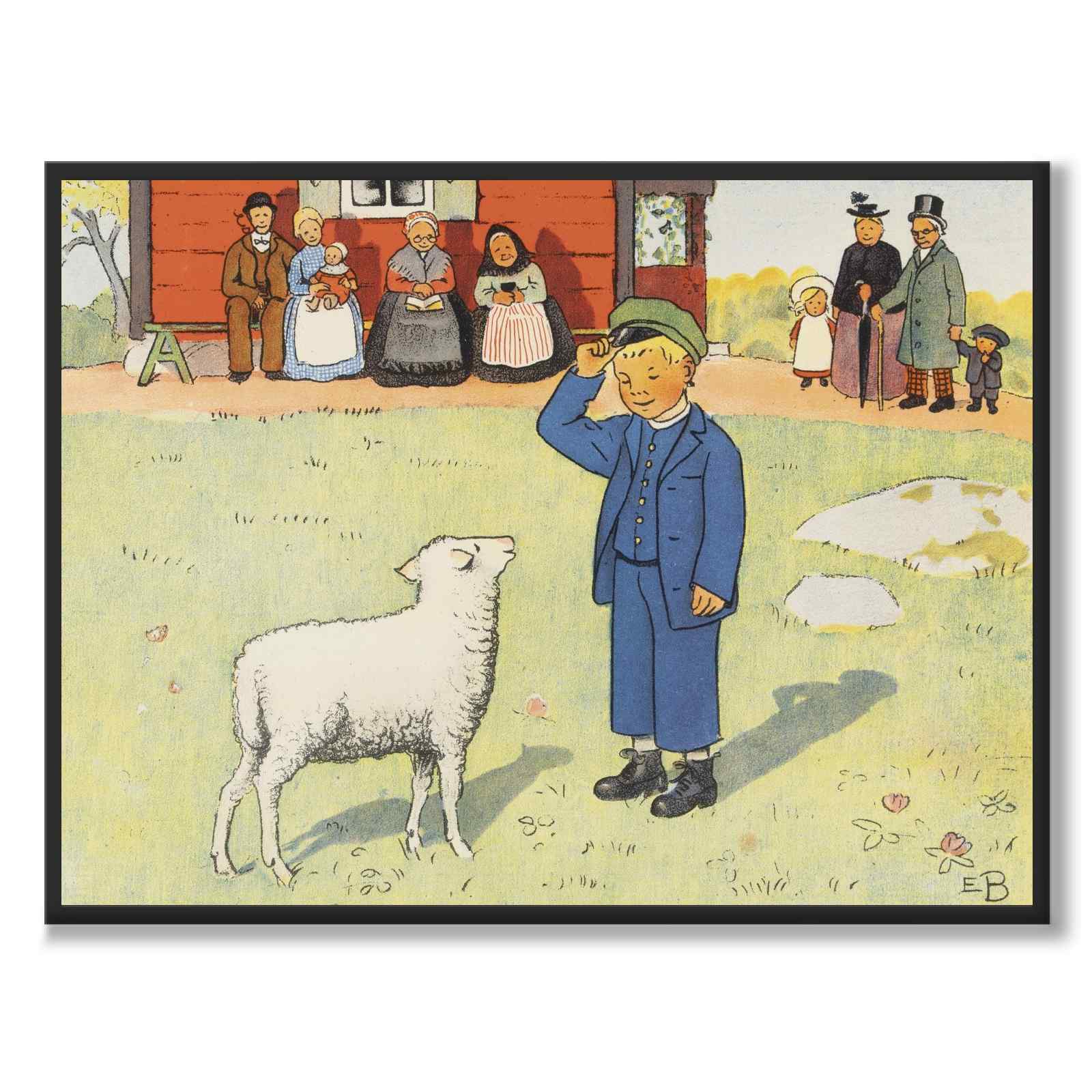Poster with a beautiful illustration from Elsa Beskow's children's book "Pelle's New Clothes" which was first published in 1907.