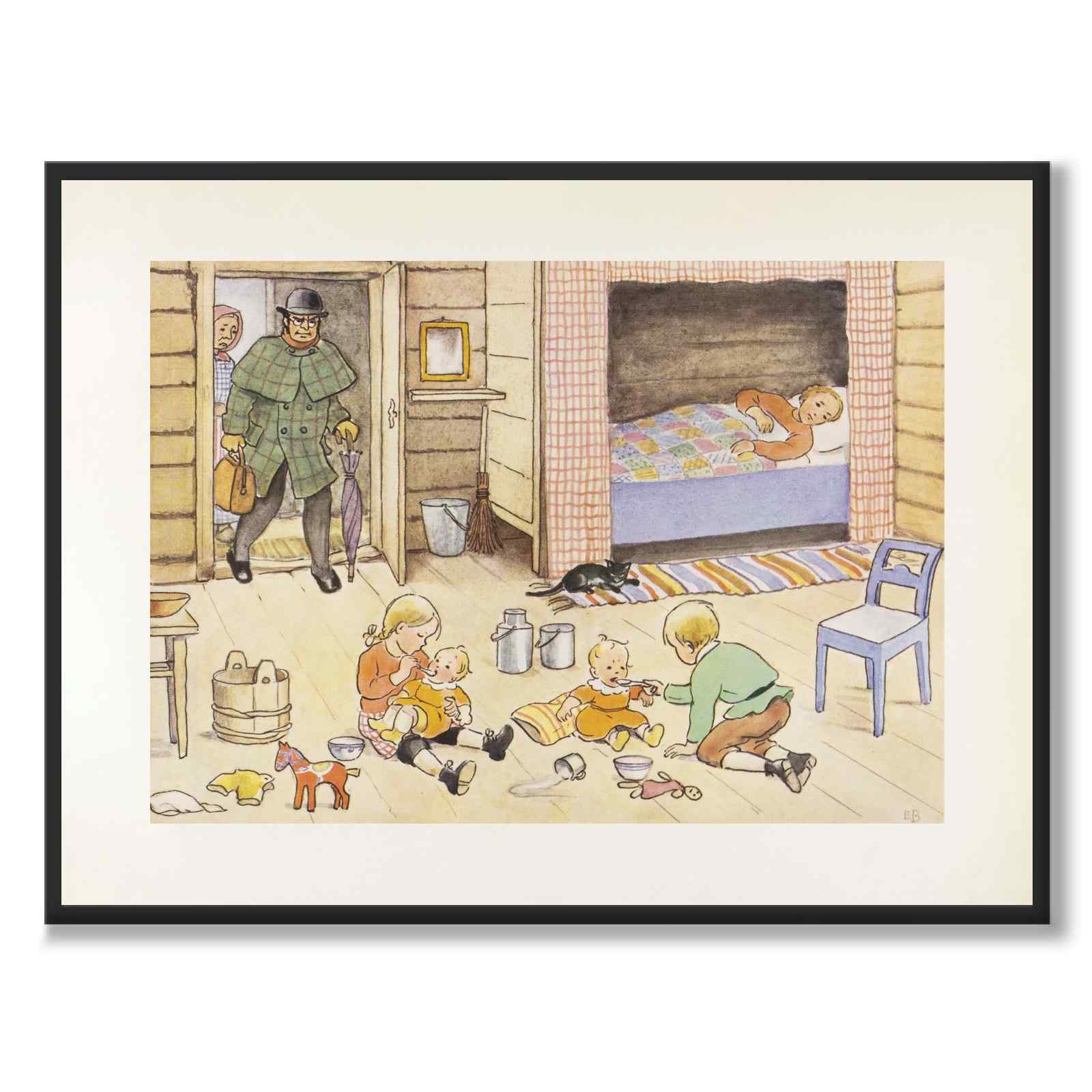 Poster with the illustration Petter and Lotta's Christmas (1947) by the Swedish author and illustrator Elsa Beskow (1874–1953).