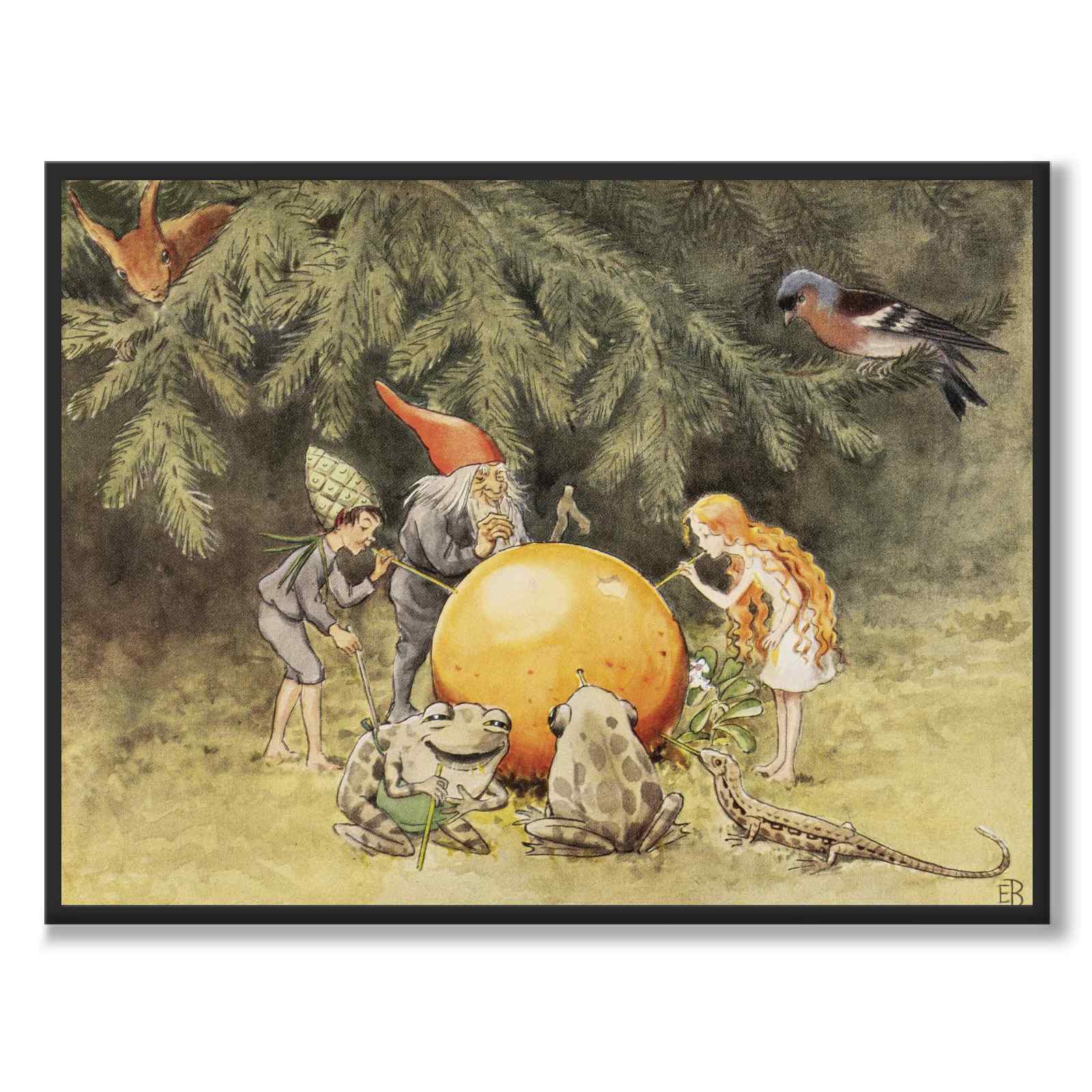 The Sun Egg, which was published in 1932, is one of Elsa Beskow's most beloved fairy tales, where she takes the reader on a magical journey through the forest. The story revolves around a little fairy who one day finds a mysterious, large and golden object in the forest. Amazed and curious, she at first thinks she has found a sun egg – an egg that has fallen from the sun itself.