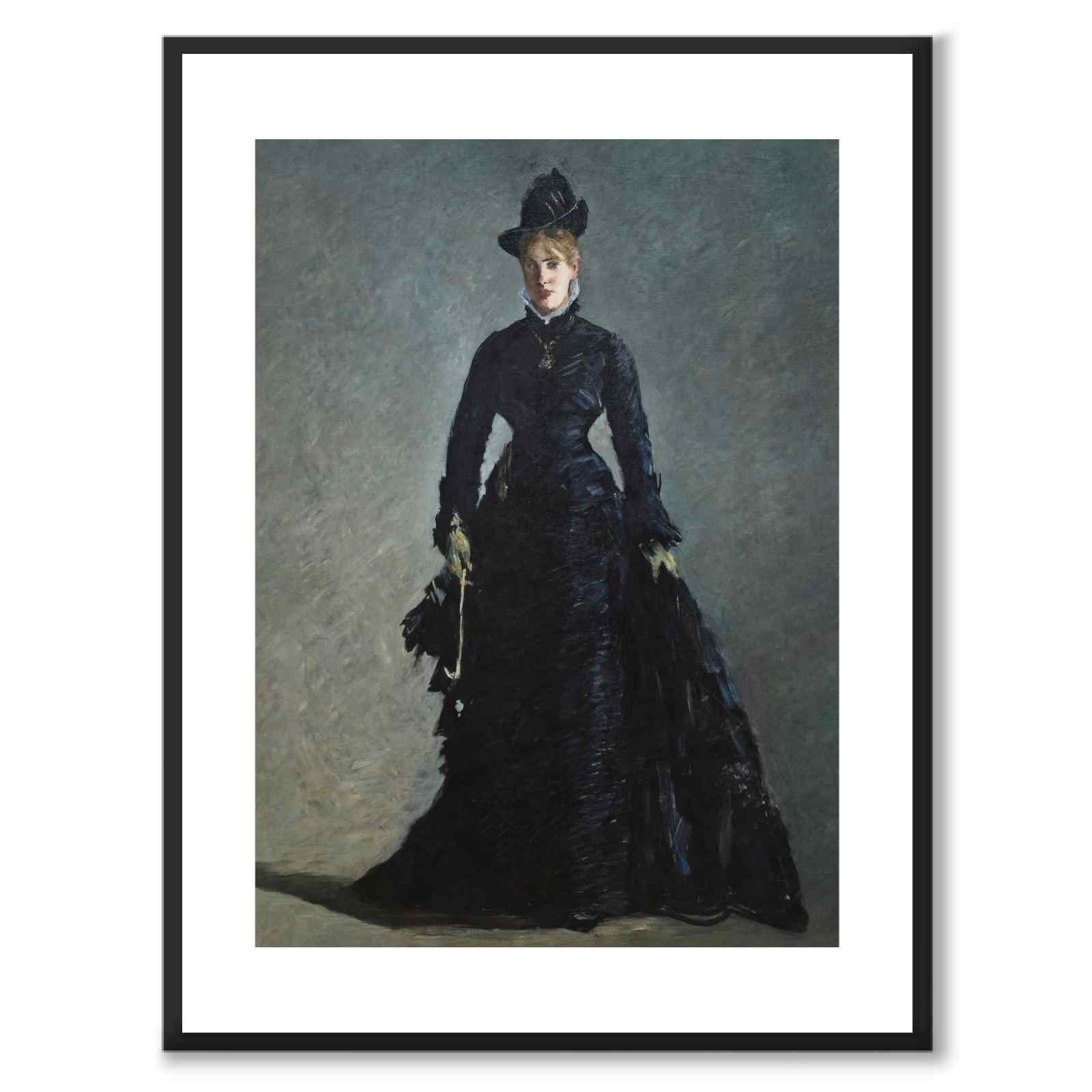 En moderne fransk kvinne i Paris på 1800-tallet. Hun har på seg en svart kjole med markert midje og en drapert tourniquet (en metallskinne som bæres under skjørtet bak). Kvaliteten og stilen på klærne avslører kvinnens høye sosiale og økonomiske status. Maleriet skildrer kvinnen som en maktfaktor og statussymbol i Frankrike på 1800-tallet.