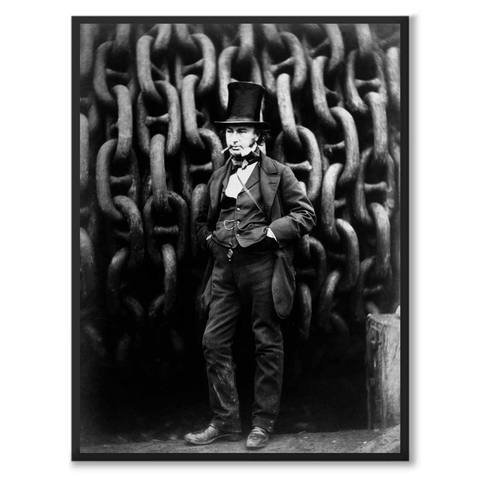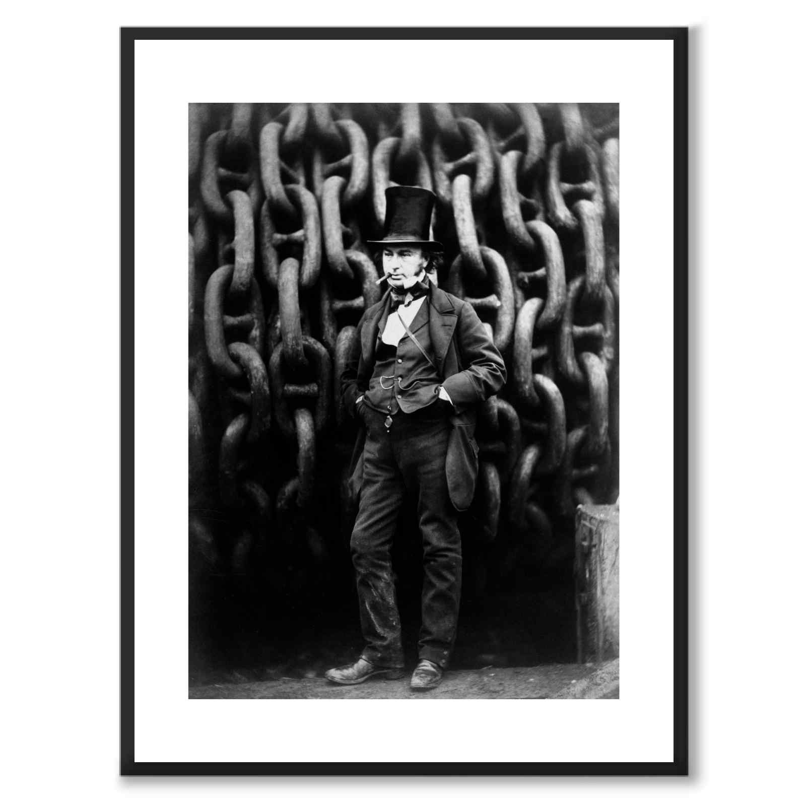 Ingeniøren Isambard Kingdom Brunel står foran lenkene til skipet The Great Eastern som han designet. Fotografiet er tatt i 1857 og er en skildring av ingeniøren som en helt. Isambard sto bak mye av den industrielle revolusjonen i England på midten av 1800-tallet og var kjent for sine store design så vel som sin personlighet. The Great Eastern var kronen på verket på hans arbeid, nasjonens store stolthet og det desidert største skipet som noen gang hadde blitt bygget på denne tiden.
