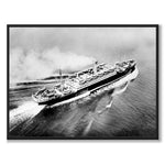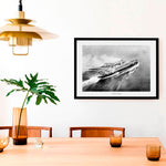 Luftfoto av det transatlantiske passasjerskipet S/S Drottningholm. Skipet var eid av Svenska Amerika Linien mellom 1920-1946. I 1925 kunne Greta Garbo sees gå på skipets passasjerdekk under reisen fra Sverige til Amerika, og under andre verdenskrig ble skipet brukt av Røde Kors til å frakte fanger og sårede. Ikke minst under fangeutvekslingene i Gøteborg i 1943-1944 da mer enn 10 000 fanger ble byttet ut.