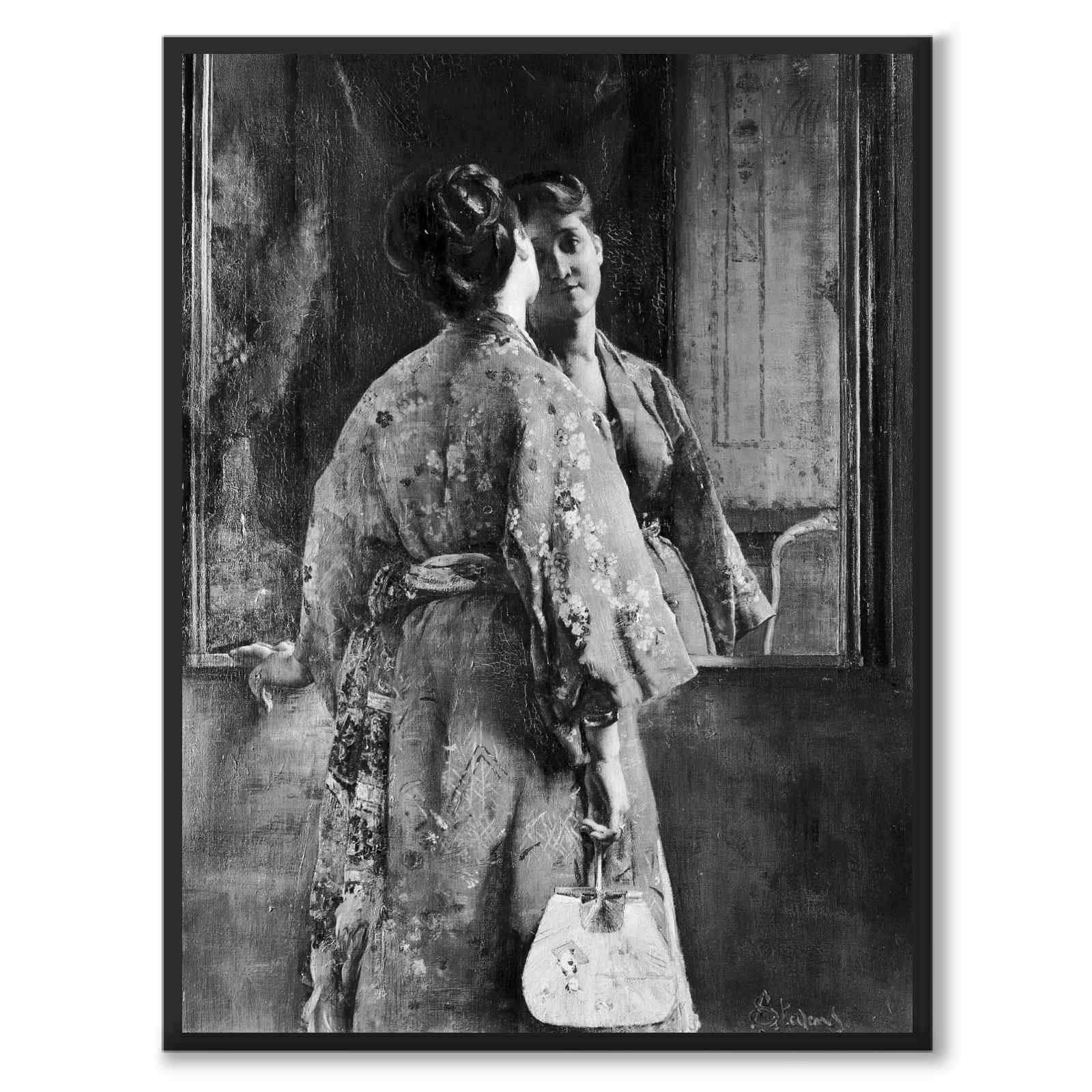 Plakat med maleriet The Japanese Robe . Verket ble malt i 1872 av den belgiske kunstneren Alfred Stevens. Han er kjent for sine elegante og realistiske portretter av fasjonable sosialitter.