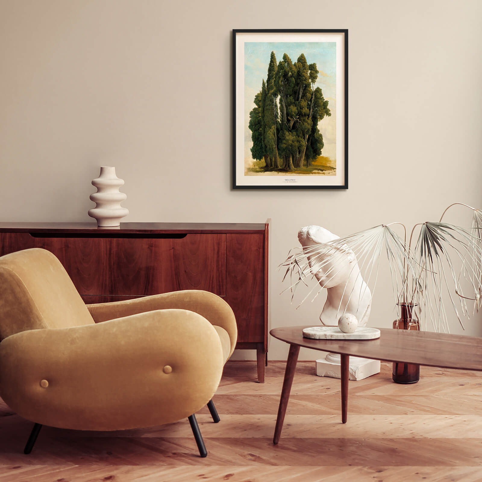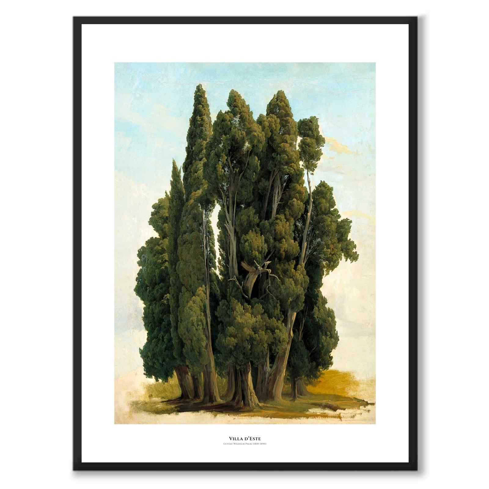 Plakat med maleri av den ikoniske hagen til Villa d'Este, Italia. Maleriet ble malt i 1843 av den svenske kunstneren Gustaf Wilhelm Palm.