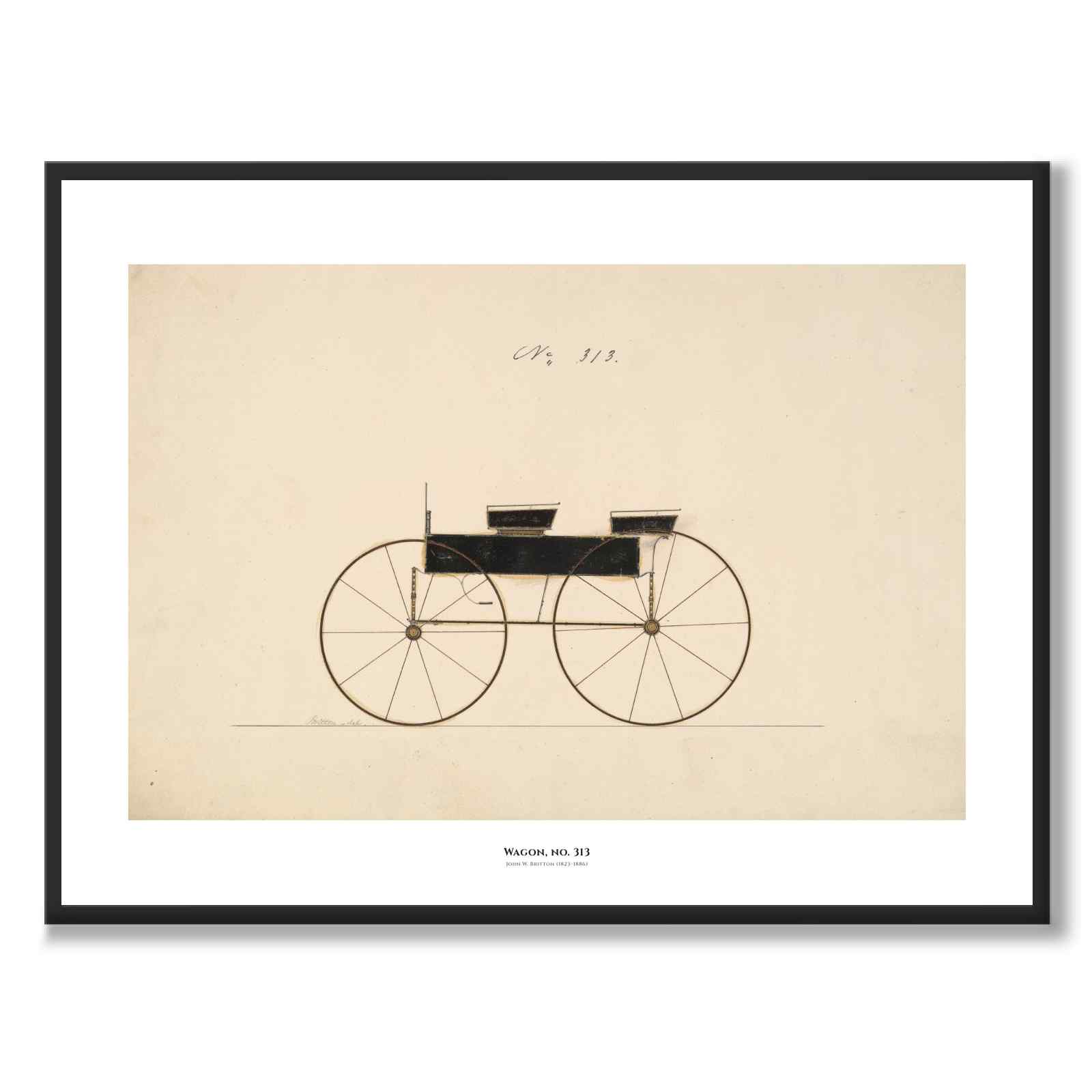 Plakat med en designskisse av den ikoniske amerikanske vognprodusenten Brewster & Company. Av alle amerikanske vognprodusenter var ingen så høyt ansett for design, finish og kvalitet som Brewster & Company.