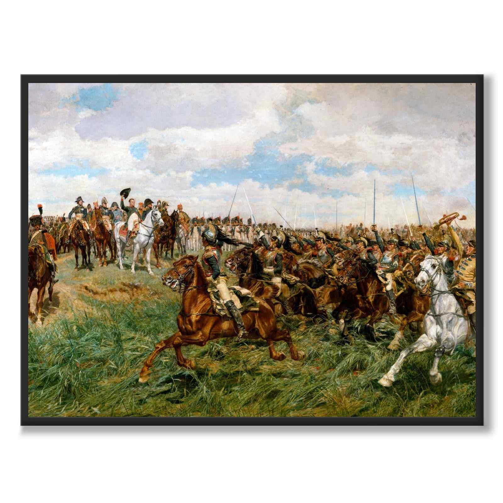 Plakat med maleriet fra 1807, Friedland, laget av Ernest Meissonier - en fransk maler. For Meissonier ble detaljert historisk nøyaktighet en lidenskap, som vi ser i dette maleriet som viser en av Napoleon Bonapartes største seire.