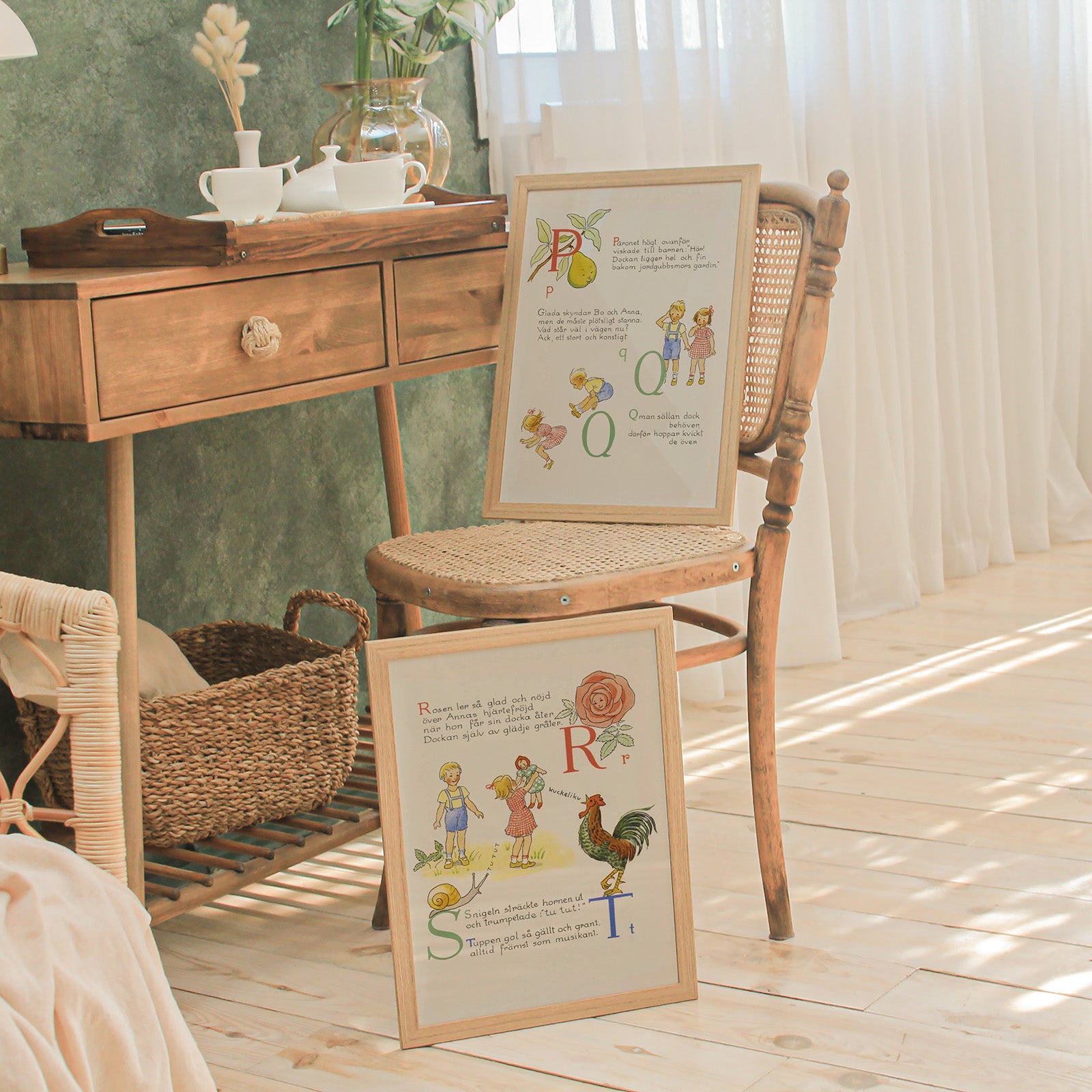 Denne illustrasjonen er fra boken «ABC Journey», skrevet av Elsa Beskow og utgitt i 1945. Boken ble brukt til å lære barna alfabetet på en underholdende og lærerik måte, da hver bokstav er knyttet til et bilde og et kort rim. Dette bildet viser bokstavene P & Q, med en illustrasjon av en pære og et hoppende barn fordi bokstaven Q ofte "hoppes over".