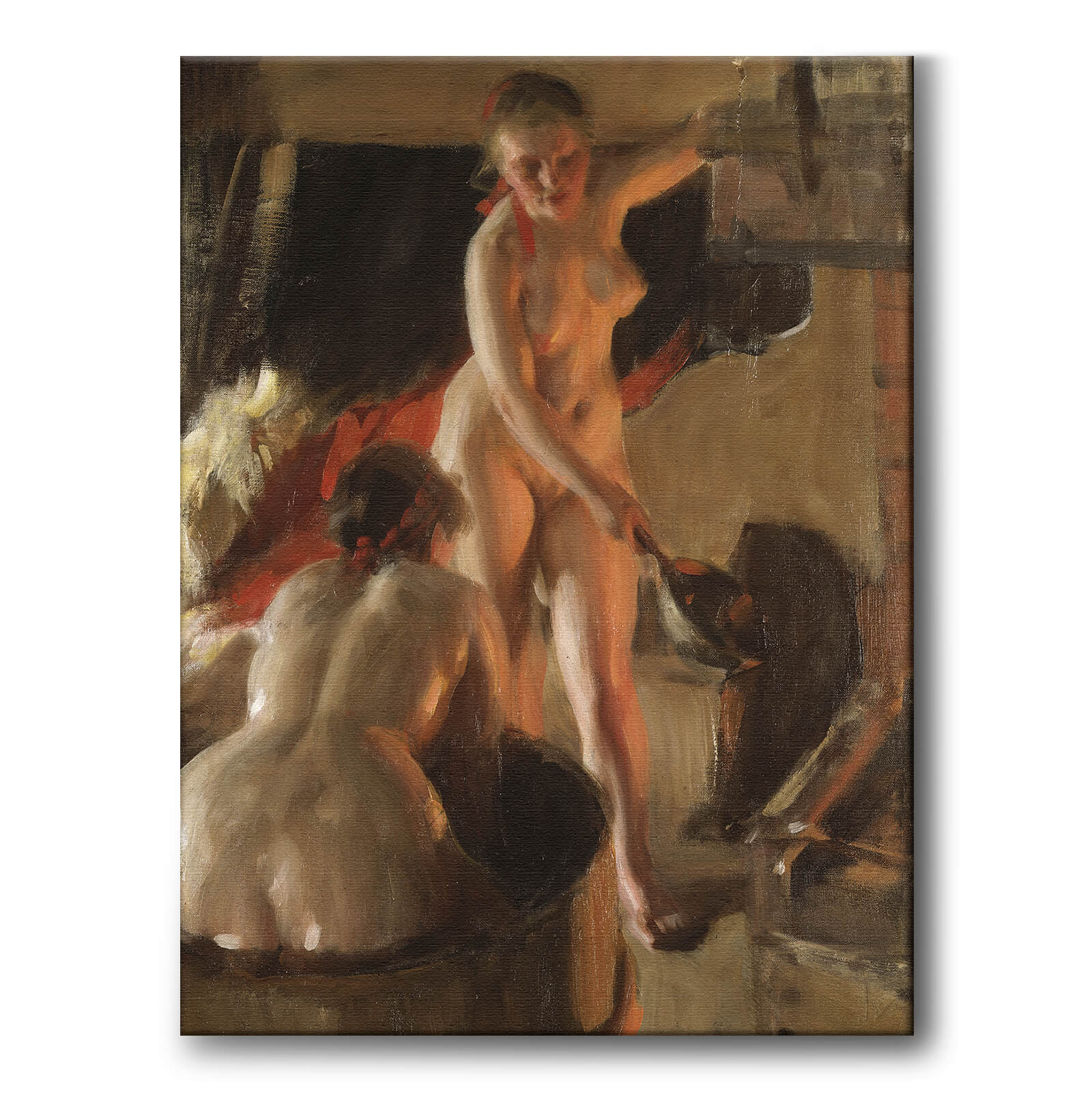 Lerretsbilde med maleriet Badebakker av den berømte kunstneren Anders Zorn.