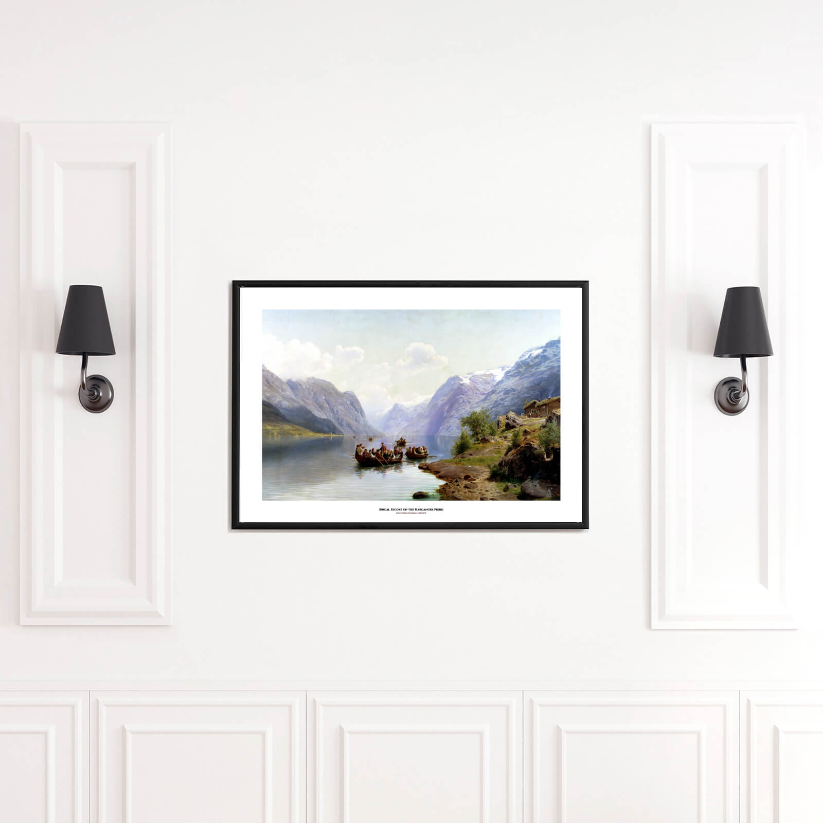 Et vakkert maleri fra 1865 ble det avbildet en brudeferd en solrik sommerdag i Hardangerfjorden. Kunstneren Johan Fredrik Eckersberg var en anerkjent dyktig landskapsmaler og hadde stor innflytelse i overgangen fra romantikk til realisme både som kunstner og som lærer ved egen kunstskole i Oslo.