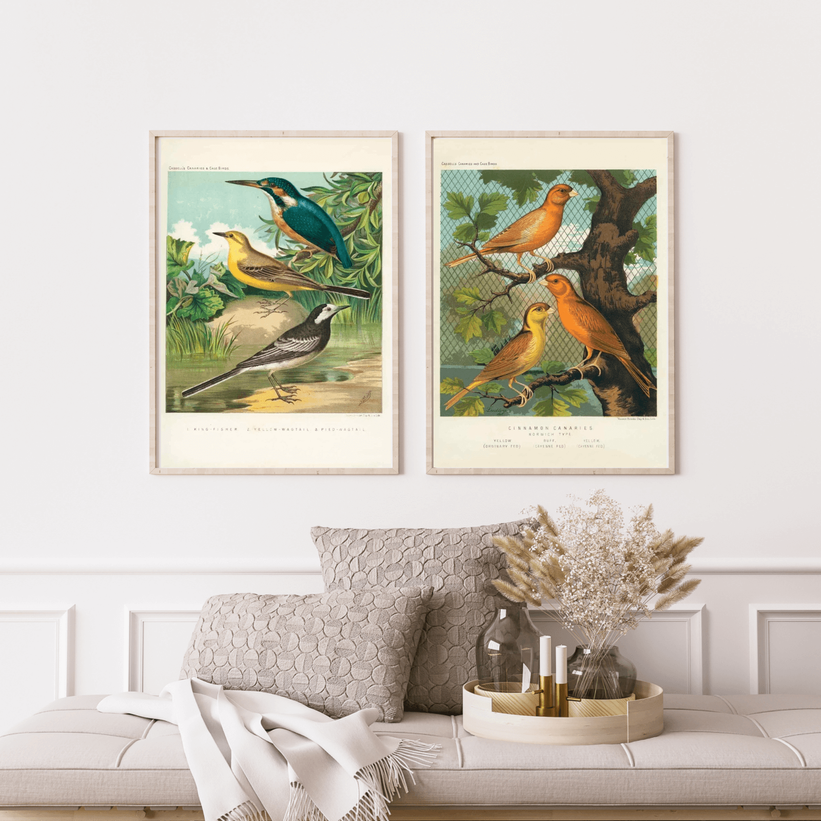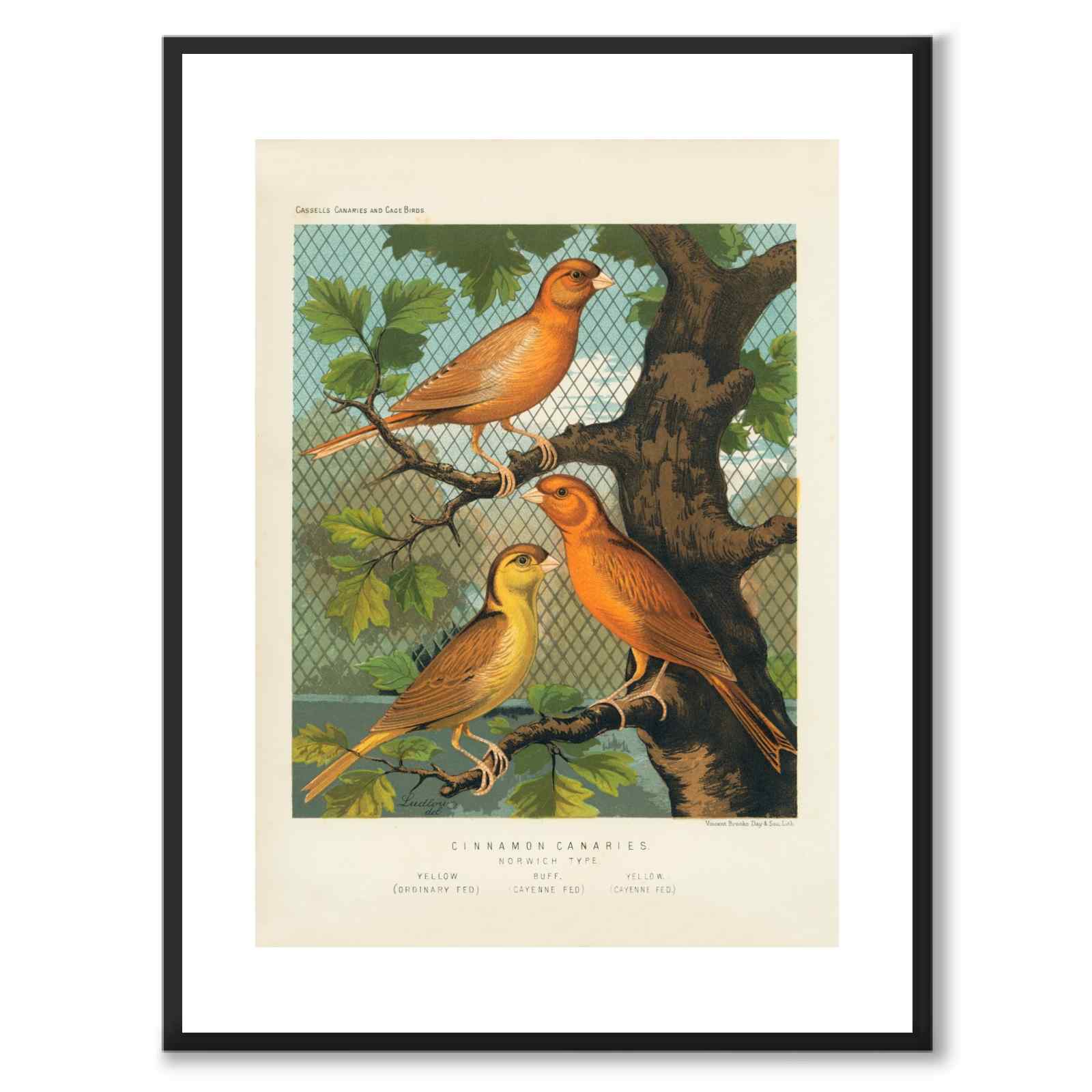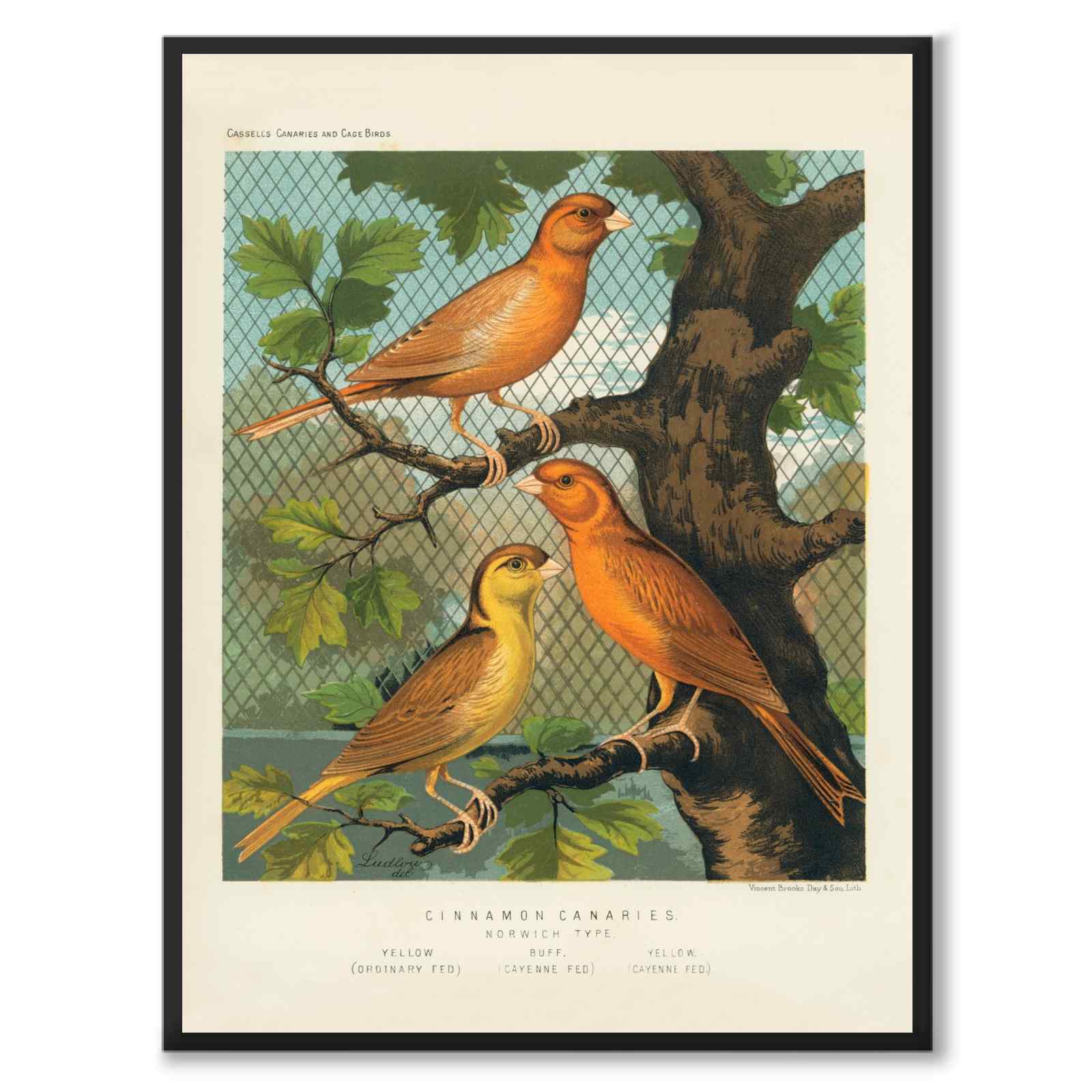 Plakat med illustrasjonen Cassel fra boken The Illustrated Book of Canaries and Cage-Birds . I denne illustrasjonen ser vi arten Cinnamon Canaries.