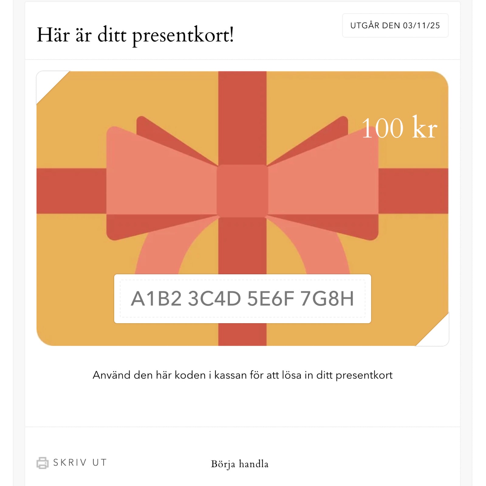 Mottakeren av gavekortet kan enkelt velge å legge gavekortet til sin Apple Wallet, noe som gjør det ekstra enkelt for ham eller henne! Våre gavekort er alltid gyldige i ett år fra kjøpsdato.