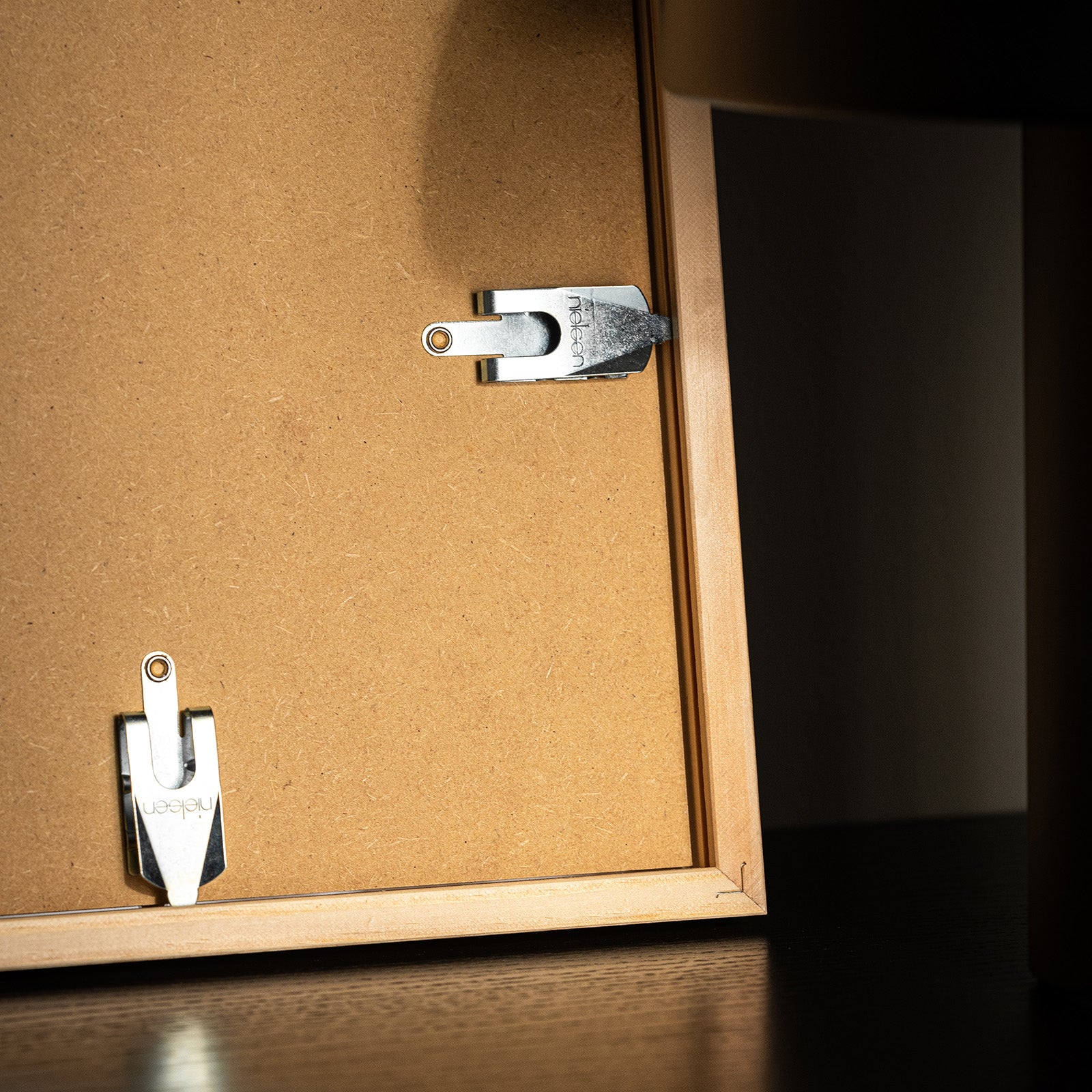 Hver ramme er utstyrt med kantpolert floatglass, et syrefritt innlegg og et slitesterkt MDF bakpanel. Bakpanelene er utstyrt med oppheng for både stående og liggende orientering