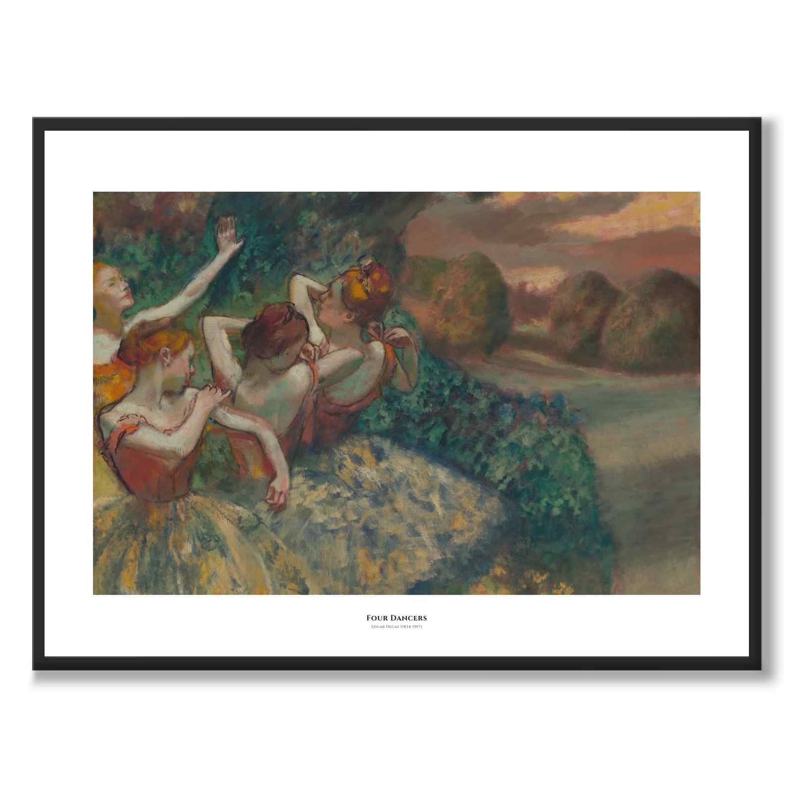 Plakat med det vakre maleriet Fire dansere laget av den ikoniske kunstneren Edgar Degas i 1899.