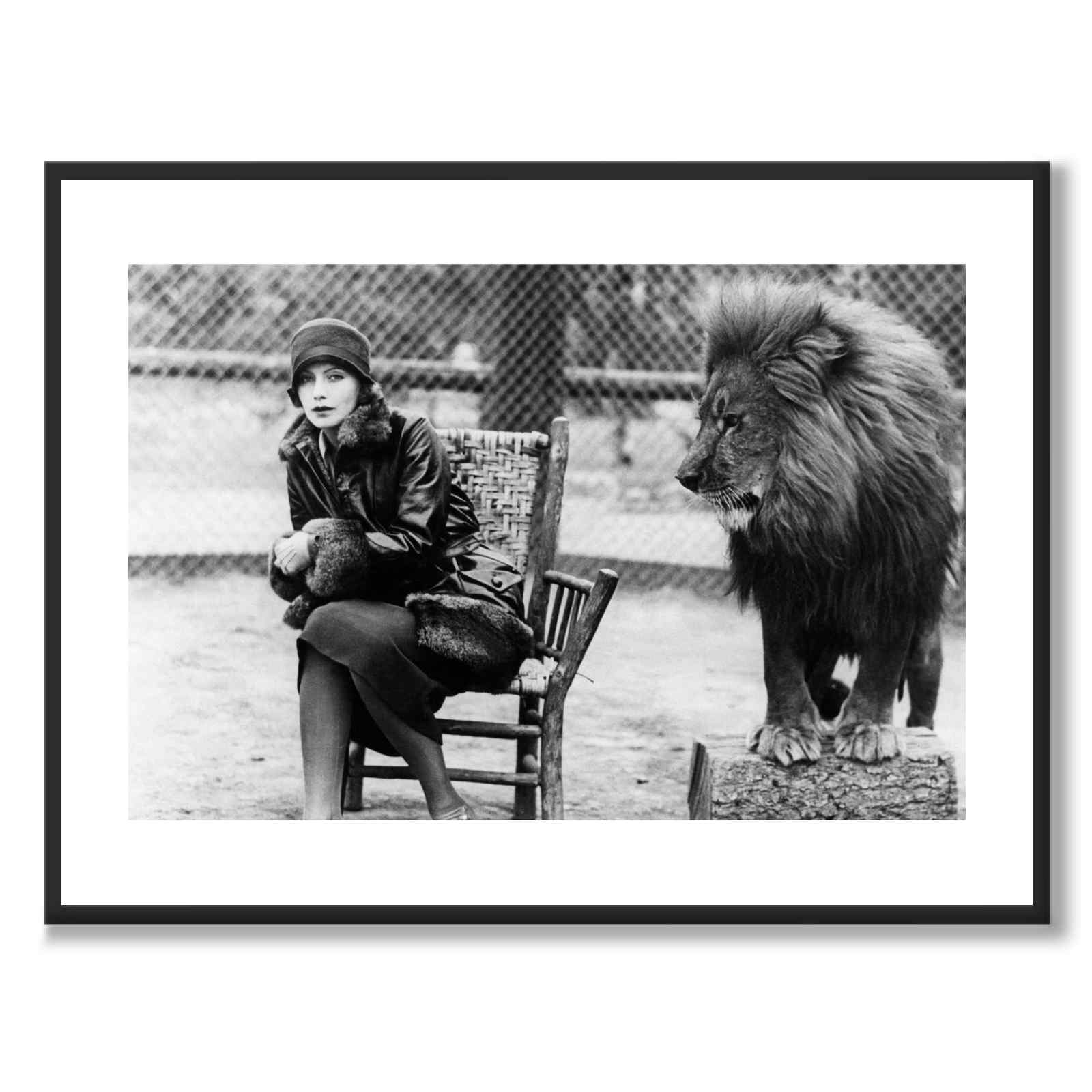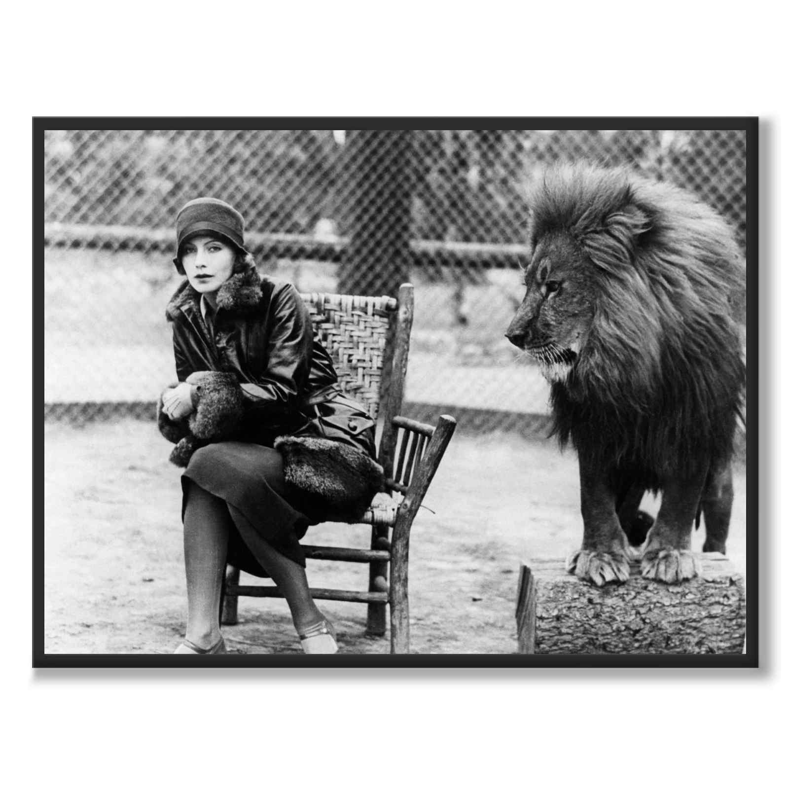 Ikonisk bilde av Greta Garbo sammen med den velkjente Metro-Goldwyn-Mayer-løven som mange sikkert har sett brøle i begynnelsen av filmer opp gjennom årene.