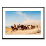 Plakat med maleriet Horses on the Campagnan av Carl Wahlbom fra 1856.