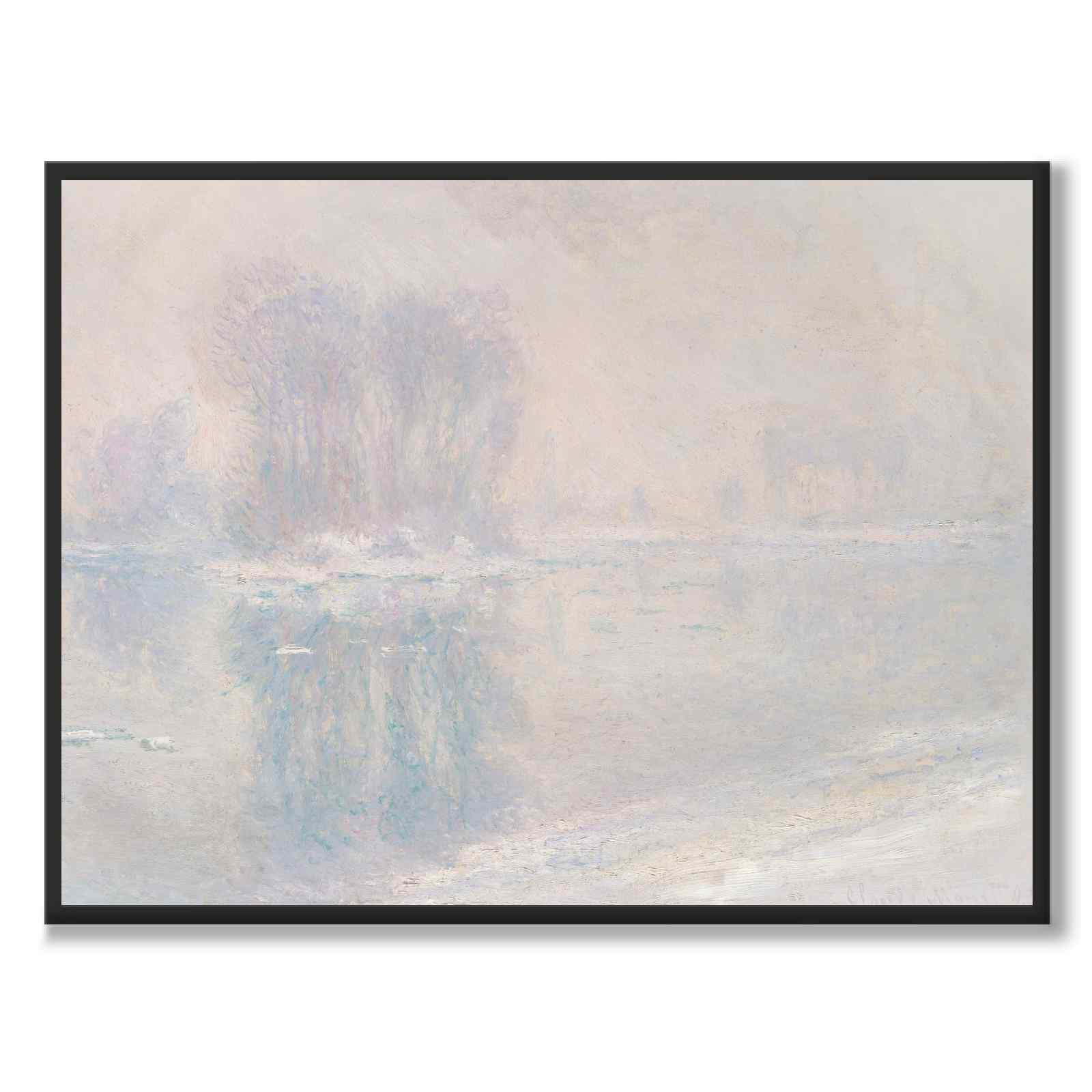 På bildet ser vi et vakkert vinterlandskap i matte farger som skaper tåkefølelse. Gjennom tåken er det mulig å se trær som reflekteres i stille vann. I vannet ser vi også små isflak, som har gitt opphav til maleriets navn.