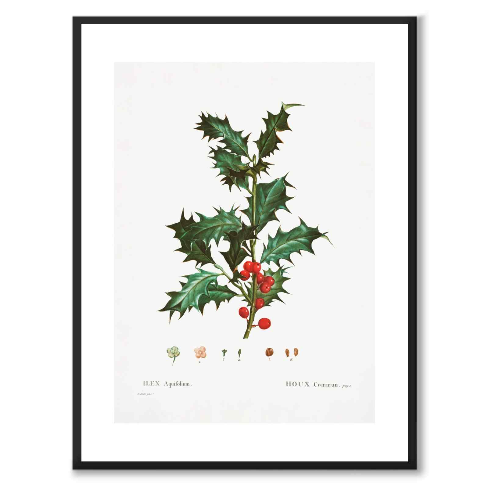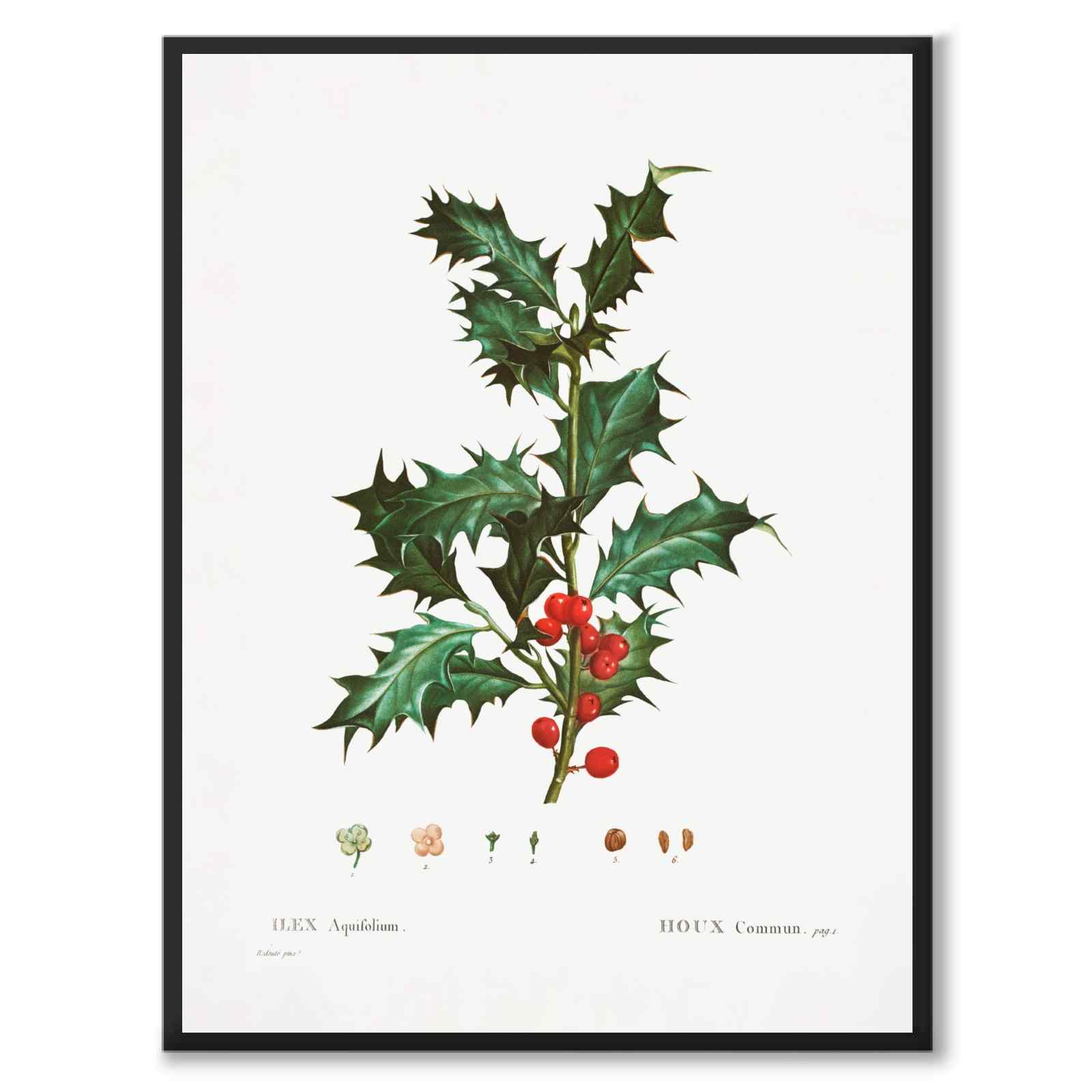 Plakat med en klassisk illustrasjon av kristtorn i 1801. Illustrasjonen ble publisert i en fransk lærebok om planter og trær mellom 1801-1819 med tittelen Traité des Arbres et Arbustes que l'on cultive en France en pleine terre. På bildet ser vi også teksten llex aquifolium , som er kristtorn på latin.