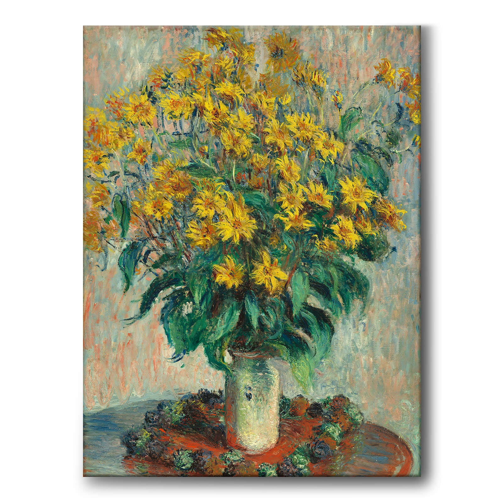 Lerret med maleriet Jerusalem Artichoke Flowers av Claude Monet fra 1880. På bildet ser vi et klassisk stilleben med vakre gule blomster.