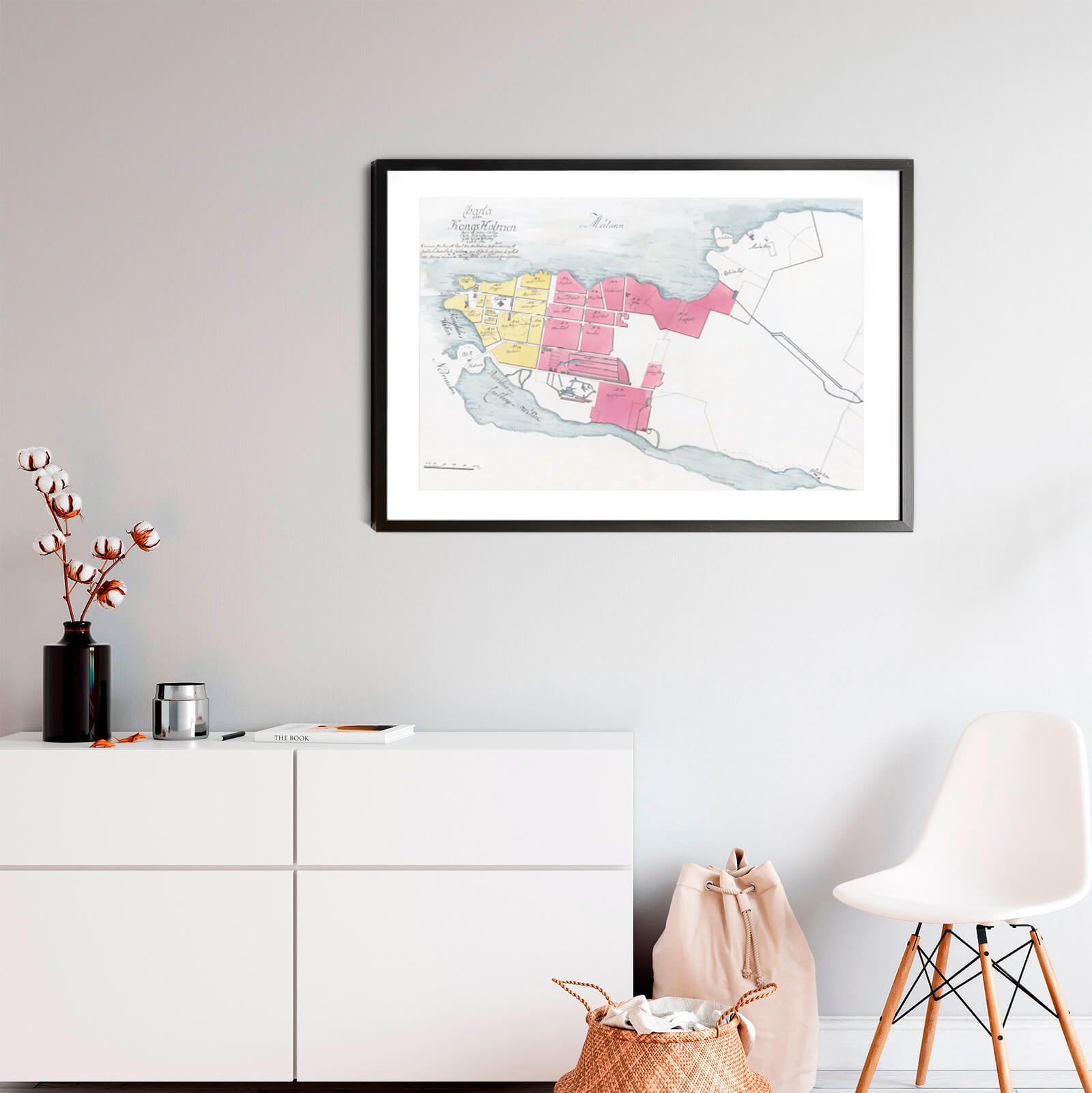 Plakat med gammelt kart over Kungsholmen, Stockholm fra år 1772.