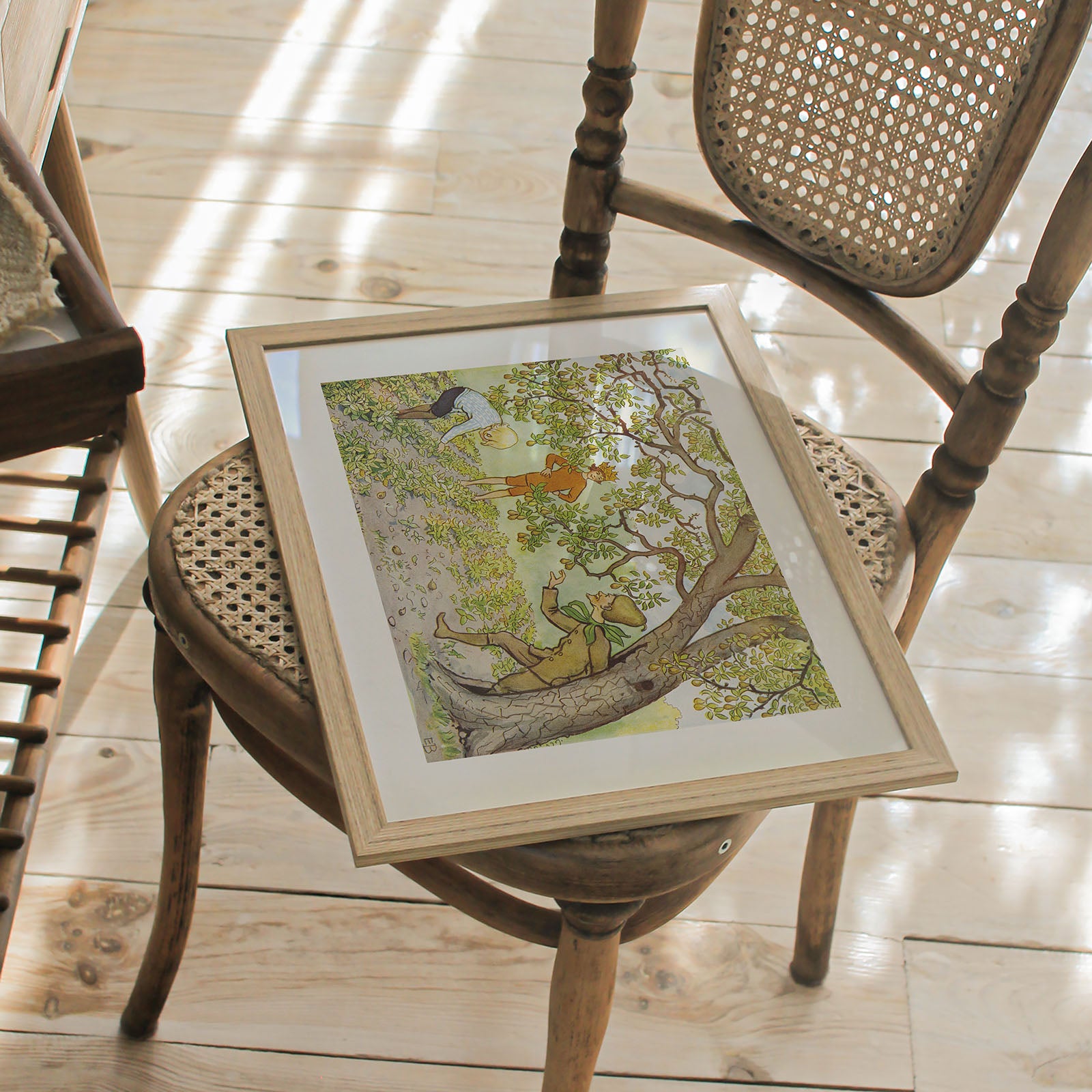 Plakat med illustrasjon fra Lasse-liten i trädgården, en av Elsa Beskows mange kjære barnebøker fra 1923.