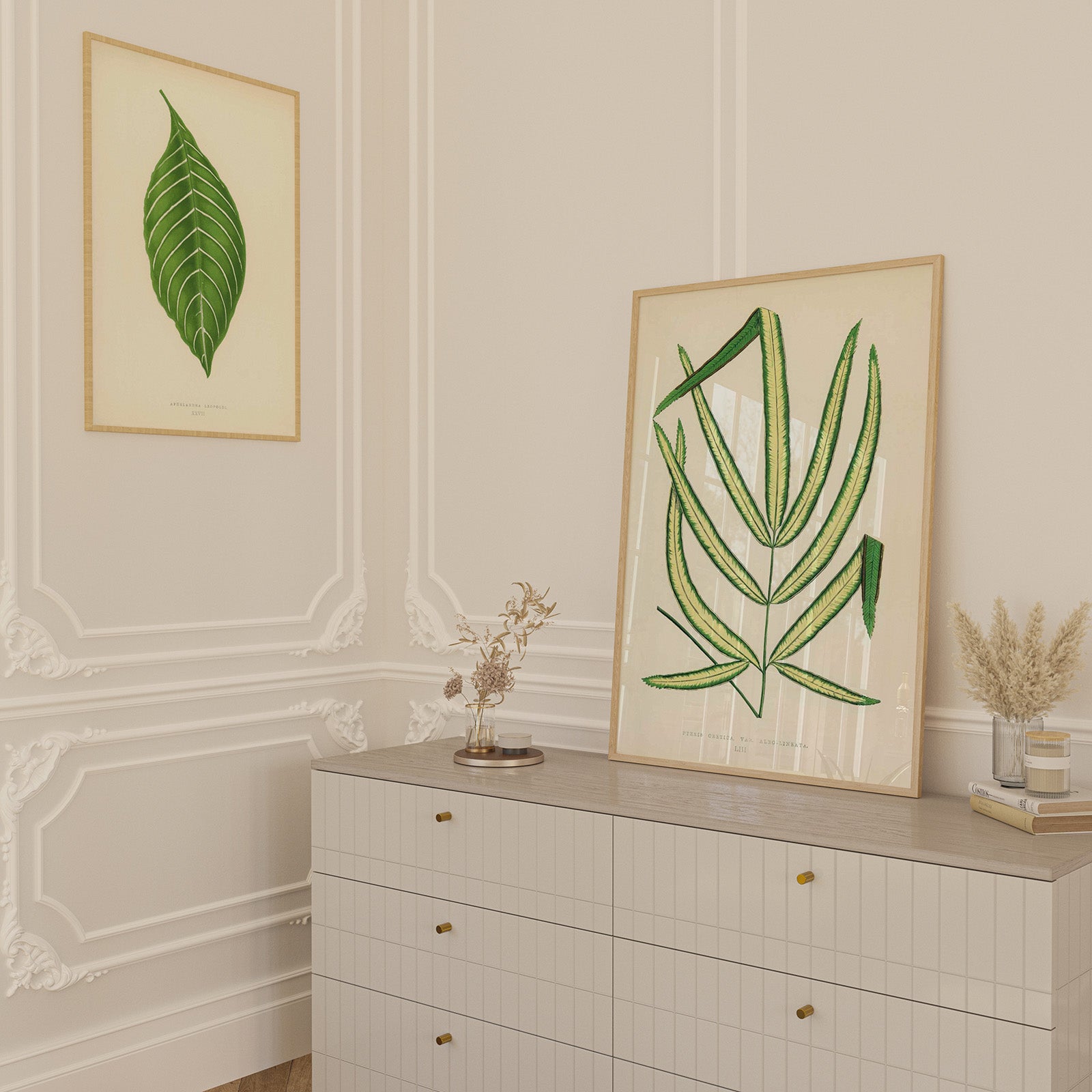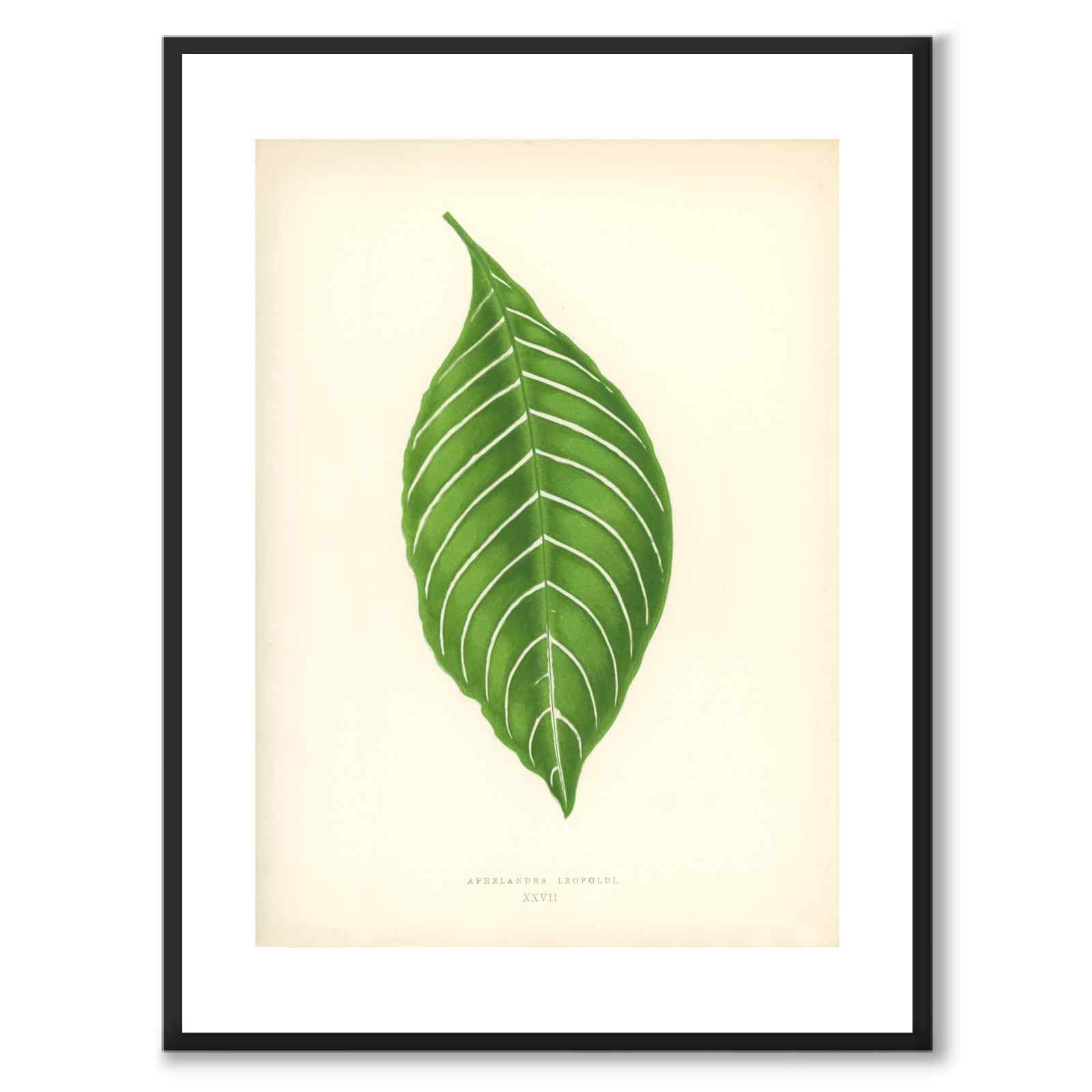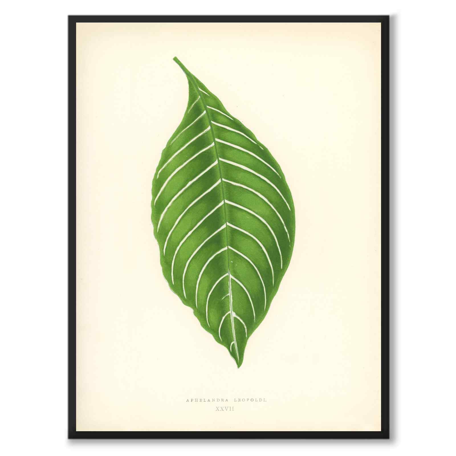 Denne klassiske illustrasjonen viser bladet til en gul kongeblomst med den latinske teksten Aphelandra leopoldi. XXVII. nederst. En tidløs interiørdetalj som passer til ethvert hjem.