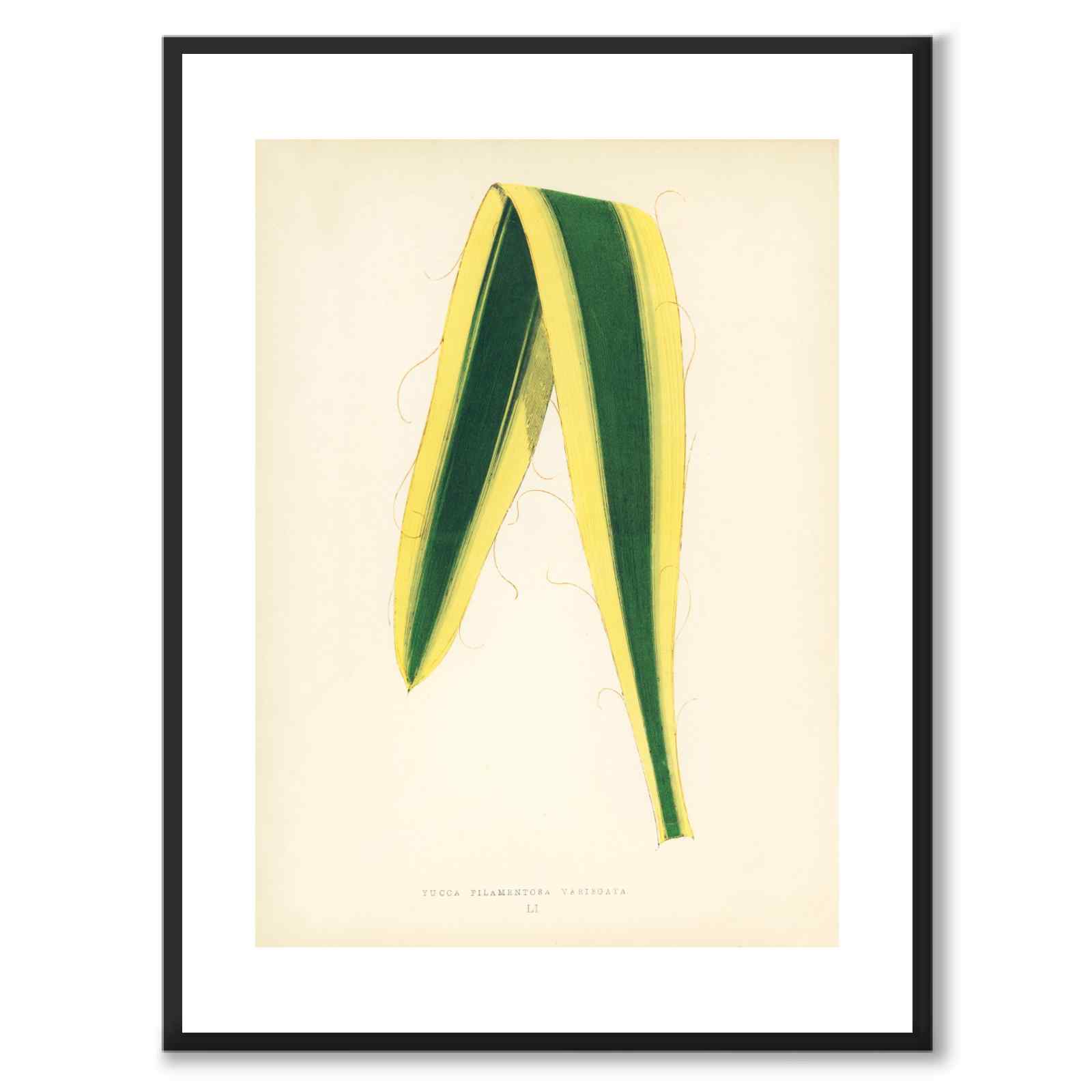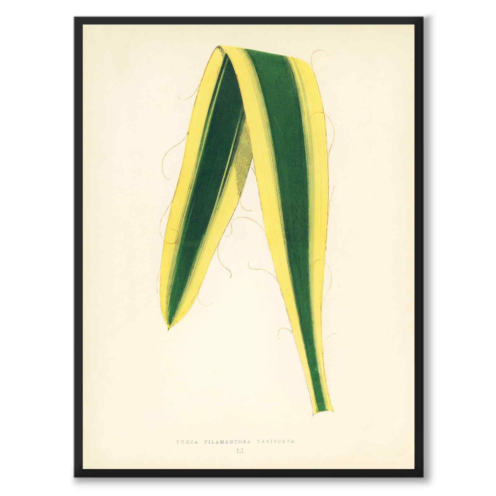 Denne klassiske illustrasjonen viser bladet til den populære potteplanten Yucca Filamentosa Variegata. Anlegget tåler kalde temperaturer så lave som -10℃ (14℉) og varme opp til 41℃ (106℉).