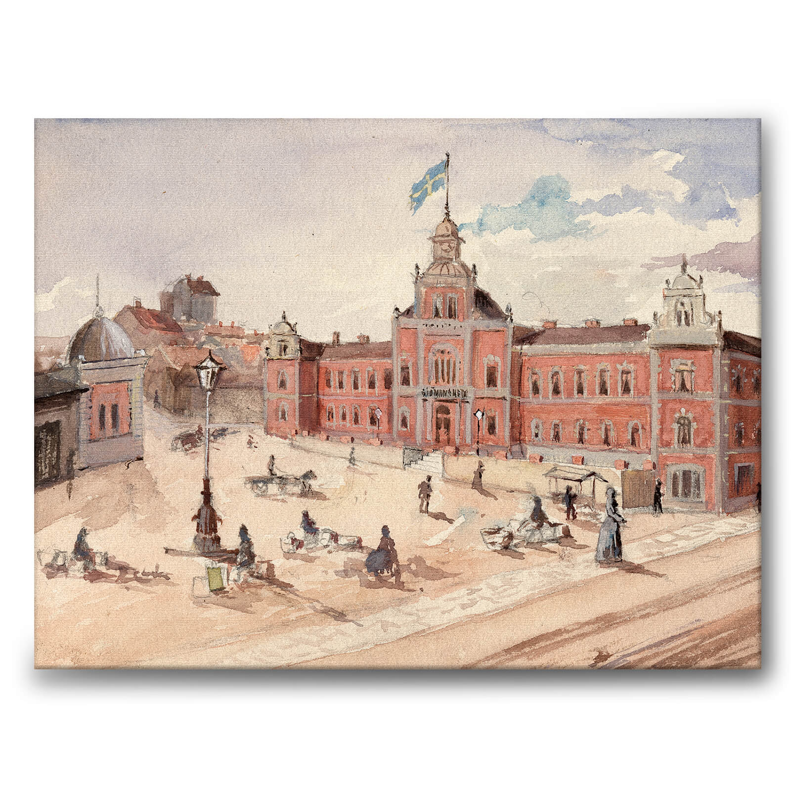 Lerret med et vakkert maleri av Masthuggstorget i Gøteborg. Kunstverket ble skapt av den danske kunstneren Ludvig Messmann i 1890 og er en del av en hel serie vakre Gøteborg-motiver.