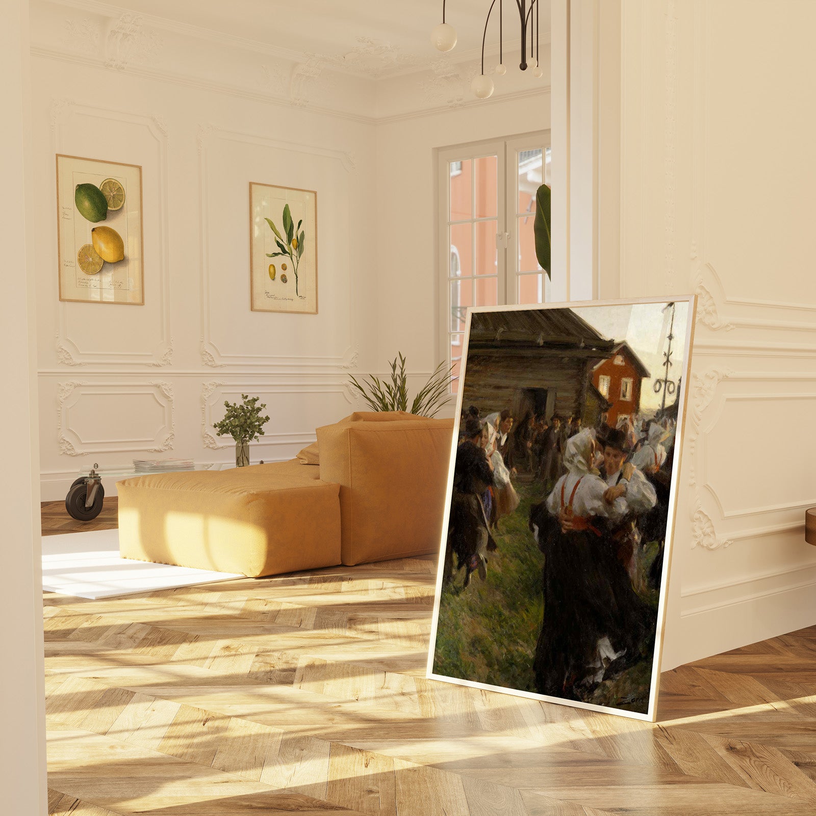 Anders Zorn er en fremtredende svensk kunstner og Midsommardans er et av Zorns mest kjente verk. Den skildrer en tradisjonell svensk midtsommerfest der folk danser rundt en majstang. Zorn fanger livligheten og gleden ved festlighetene ved å bruke livlige farger og en spontan, impresjonistisk stil.