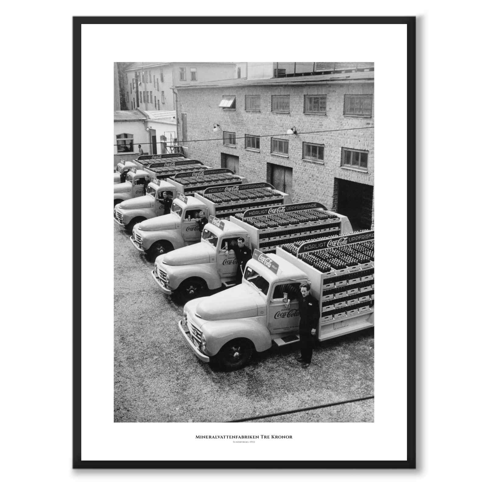 Drikken ble produsert på lisens av seks bryggerier, inkludert Mineralvattenfabriken Tre Kronor i Sundbyberg (tidligere AB Kronan). I følge Sveriges handelskalender ble selskapet Tre Kronor etablert i 1953 og i 1971 et datterselskap av Pripp-bryggerierna AB. På bildet ser vi distribusjonsbilene av merket Volvo, som kan sees stå klare på parkeringsplassen Tre Kronor.
