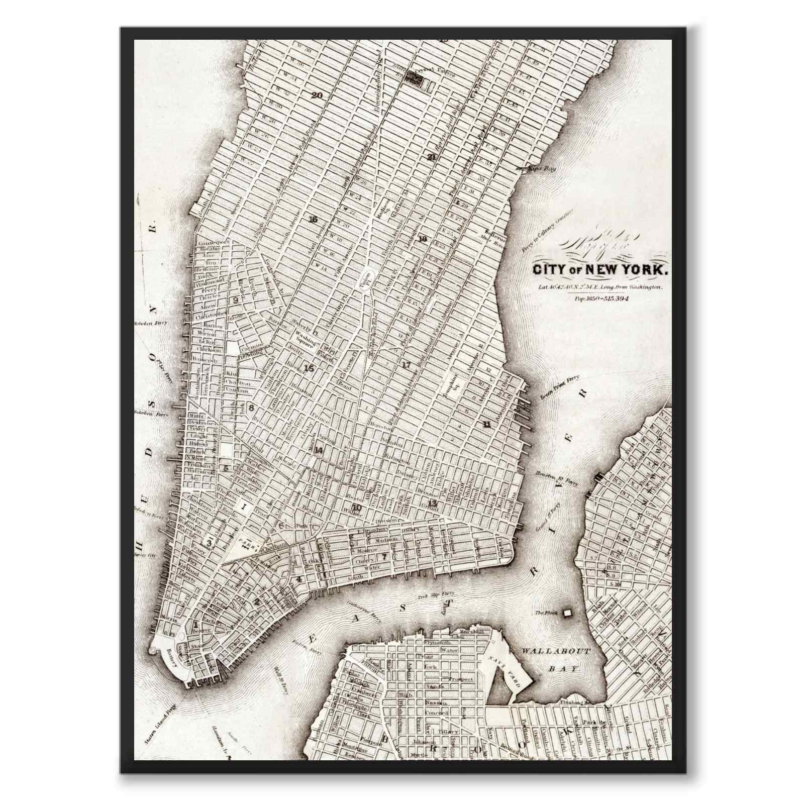Plakat med kart over byen som aldri sover, New York. Kartet er tegnet på midten av 1800-tallet.