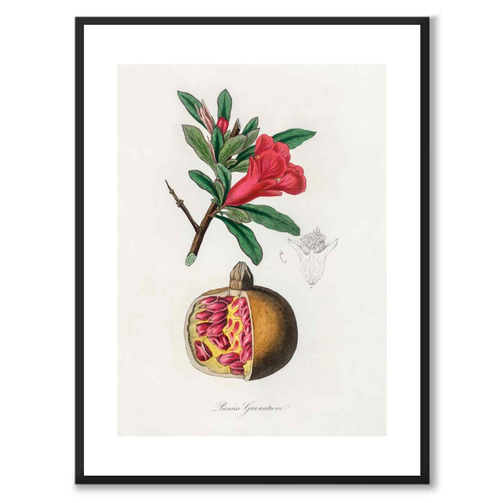 Plakat med motiv av illustrasjonen Punica granatum . Frukten også kjent som granateple, er en frukttreart som er velkjent og har en rik historie i flere kulturer rundt om i verden.