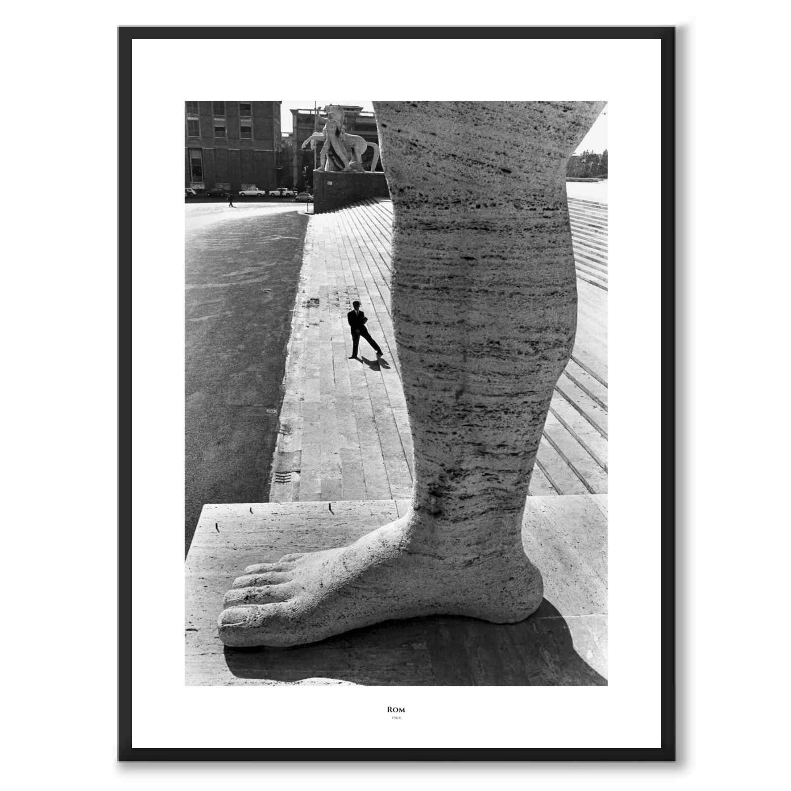 Plakat med et vintage fotografi tatt i Roma i 1968 av Sjöberg / KG Kristofferson. Fotografiet fanger en monumental steinsokkel i forgrunnen som dominerer bildet, mens en enslig mann i dress beveger seg over de brede trappetrinnene langt under.