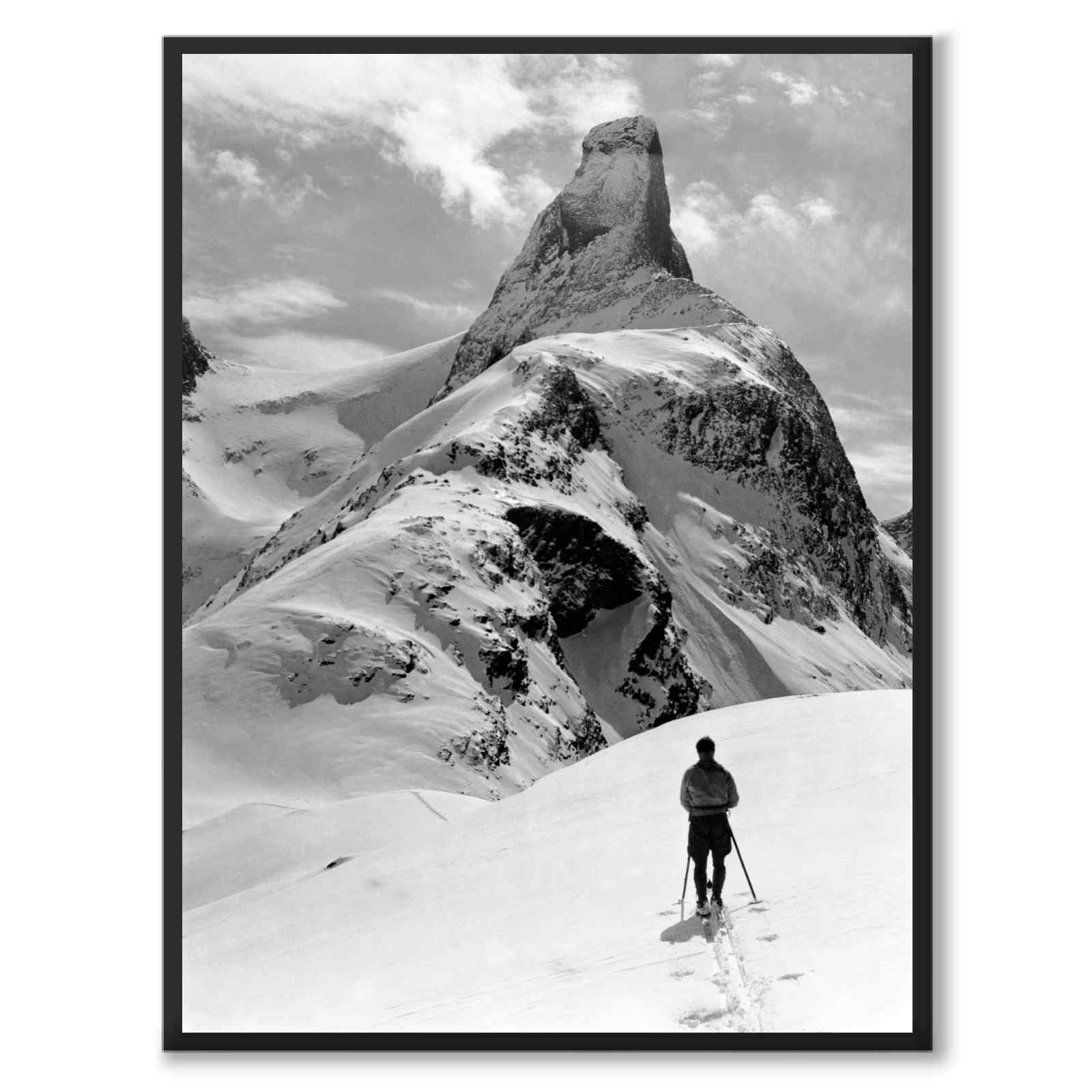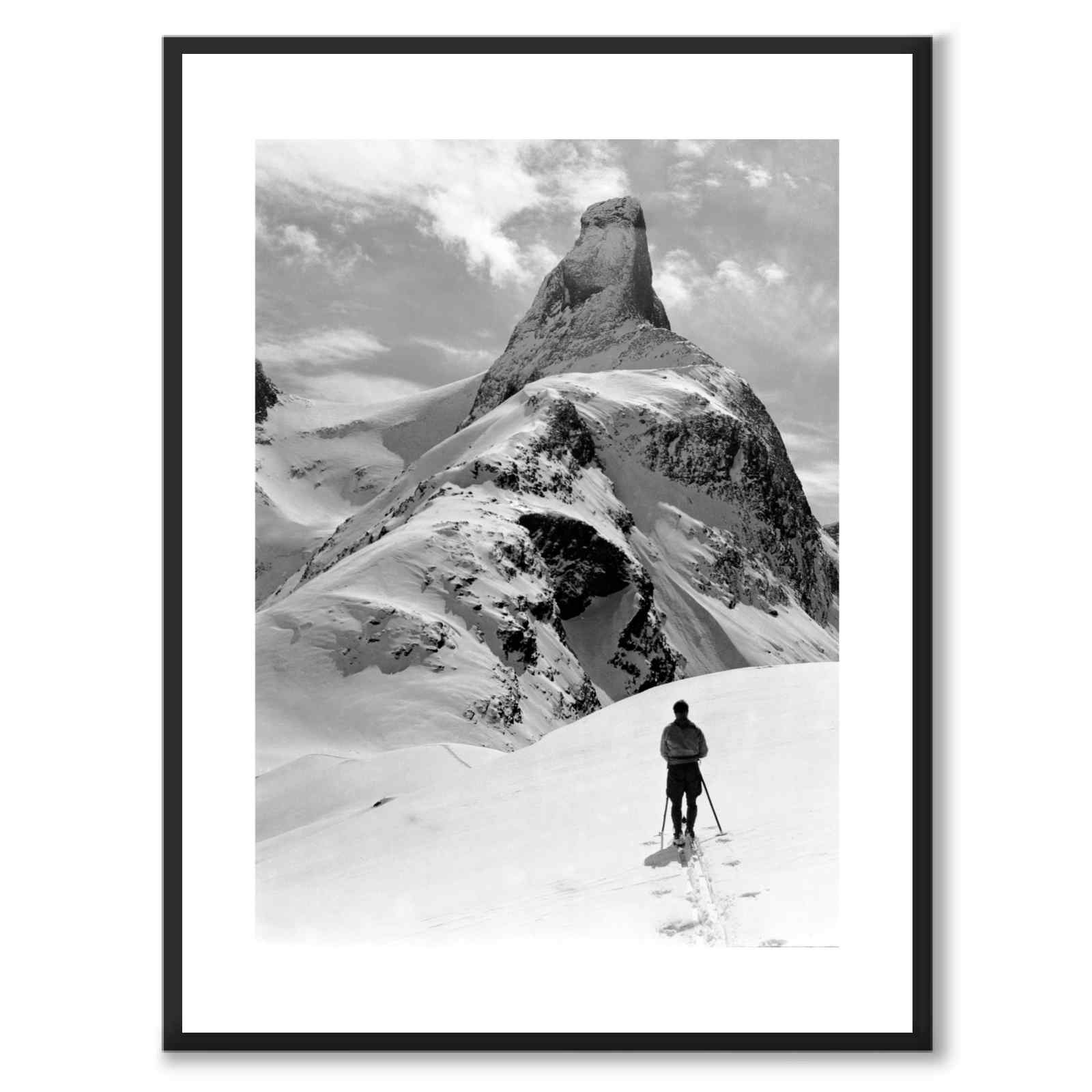 En mann går på ski i et fantastisk vinterlandskap i Norge i april 1929. Han står og ser utover Romsdalshornet. Fjellet ligger ved naturskjønne Romsdalen.