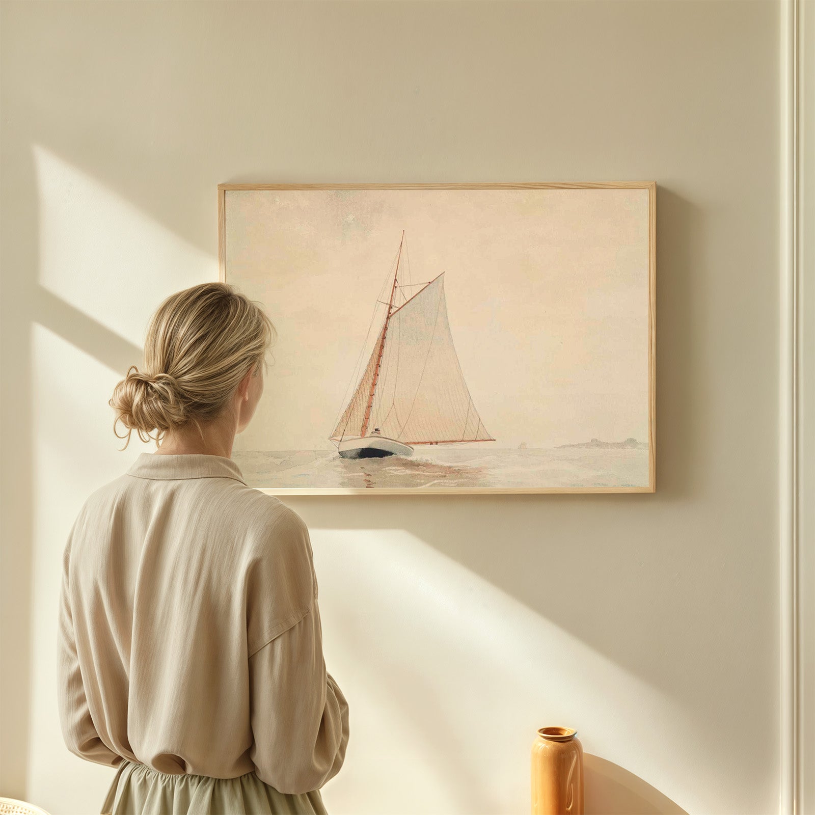 Winslow Homer var en av de mest fremtredende amerikanske kunstnerne i sin tid, og var spesielt kjent for sine maritime og landskapsmalerier. Arbeidet hans, "Sailing off Gloucester," gjenspeiler Homers kjærlighet til havet og hans dyktighet i å bruke akvarell.