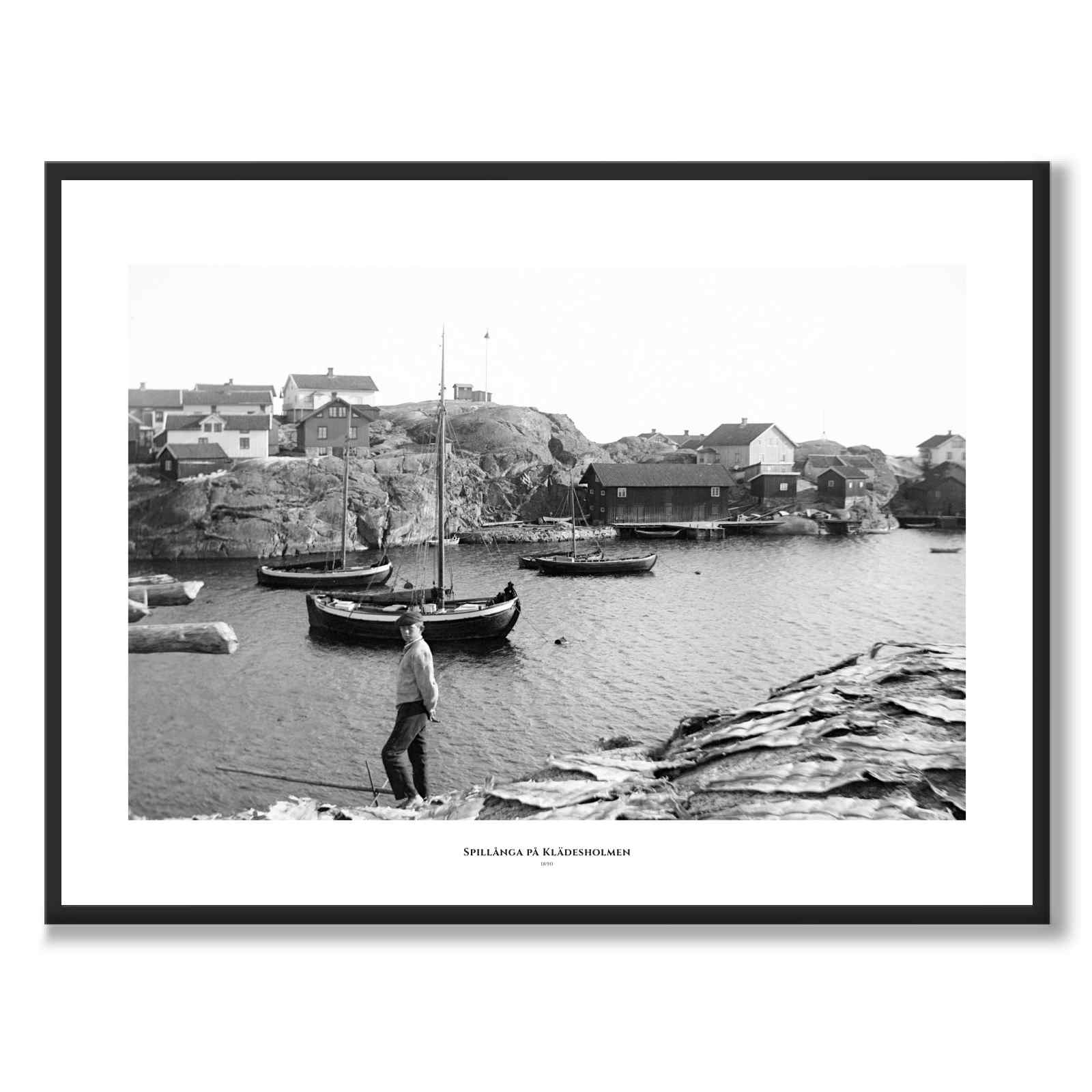 Plakat med fotografi av Spillånga på Klädesholmen fra 1890. Det nydelige bildet er tatt av Hugo Hallgren.