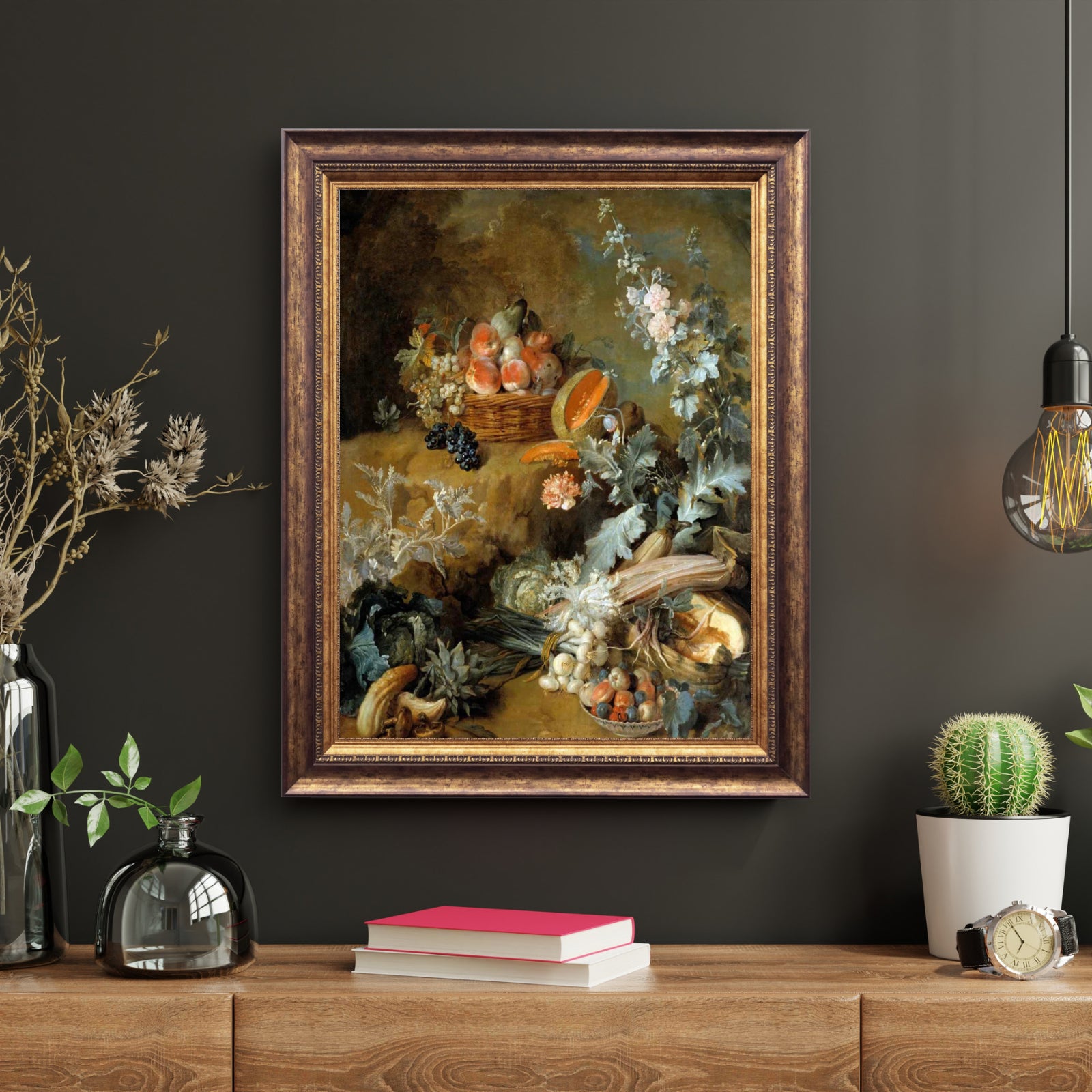 I dette maleriet har Oudry avbildet en detaljert og fargerik komposisjon av ulike frukter og grønnsaker. Stillebenmalerier i denne perioden var ofte mer enn bare en representasjon av naturlige gjenstander; de var også en form for symbolikk og sosiale kommentarer. Frukt og grønnsaker kunne representere velstand, overflod og til og med moralske budskap, avhengig av hvilke gjenstander som ble valgt og hvordan de ble arrangert.