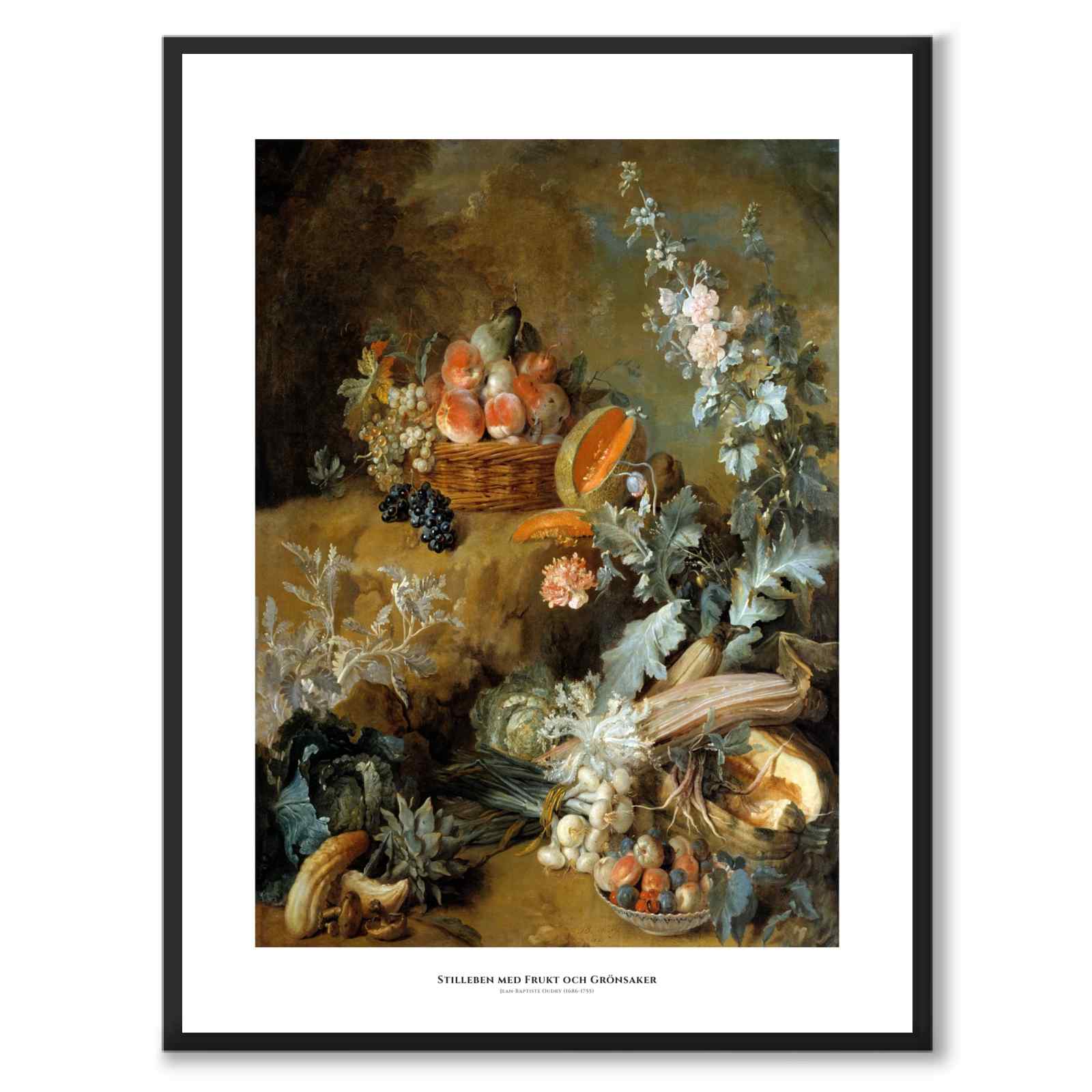 Plakat med maleriet Stilleben med frukt og grønnsaker av Jean-Baptiste Oudry fra år 1721.