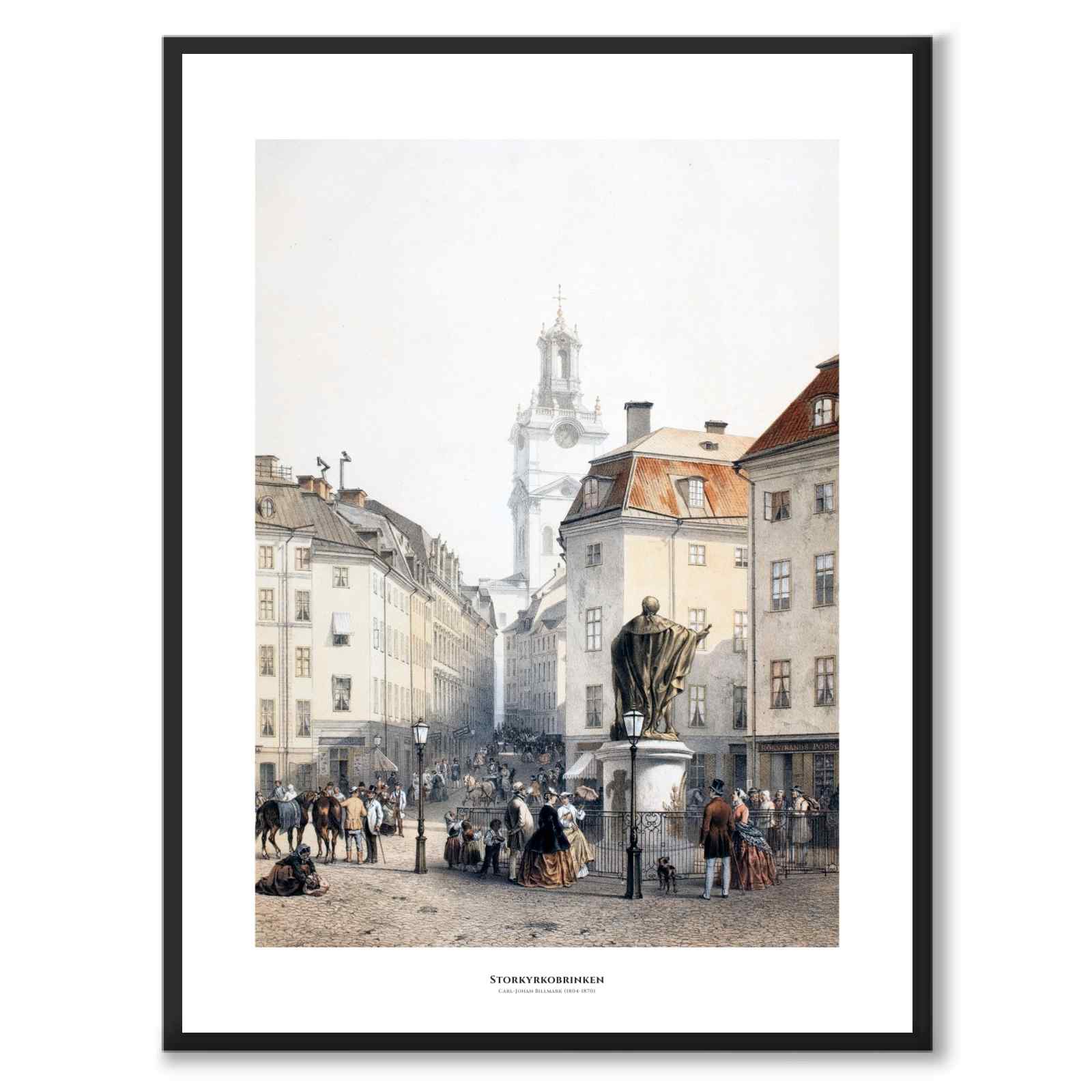 Vakre Storkyrkobrinken i Stockholm på 1860-tallet, malt av Carl Johan Billmark. Storkyrkobrinken er en gate i Gamlebyen som går fra Storkyrkan til Myntgatan. Den er like gammel som middelalderen da den ble kalt Sankt Nicolai havn (sancte nicolauese havn, 1422).