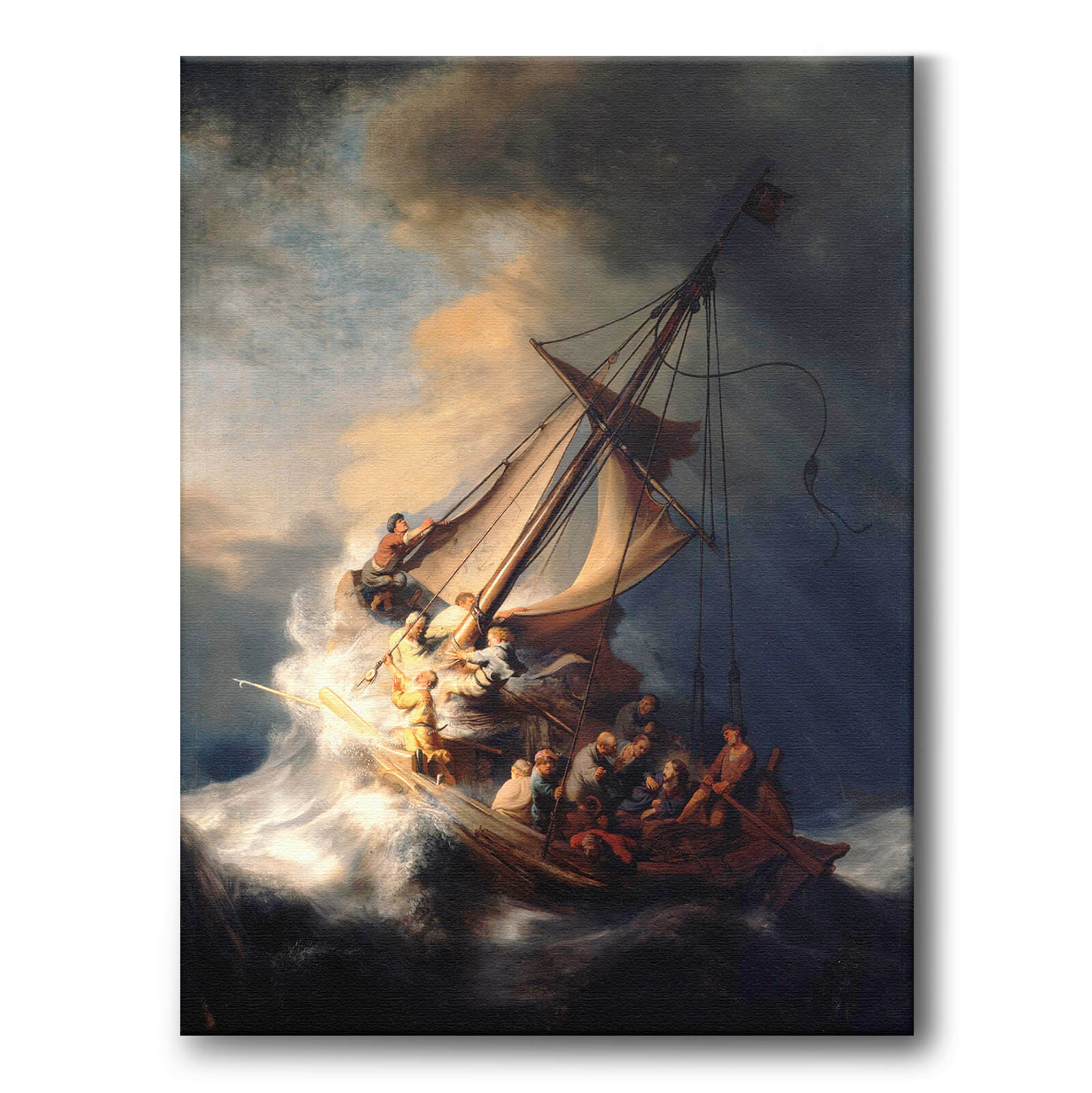 Maleriet viser Jesus og disiplene under en storm på Galileasjøen etter hvordan dette er beskrevet i det fjerde kapittelet i Markusevangeliet.