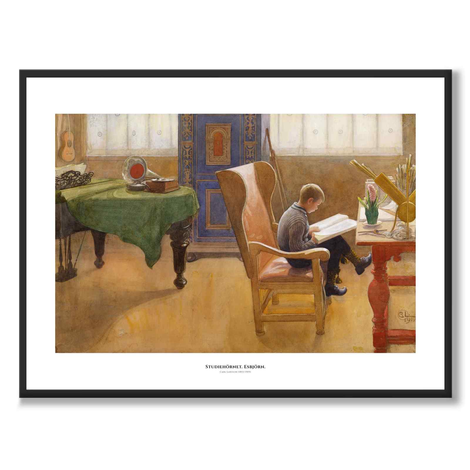 Plakat med maleriet Studiehörnet. Esbjörn av den svenske kunstneren Carl Larsson fra 1912. Maleriet er en del av Larssons serie verk som skildrer familiens liv i det idylliske hjemmet i Sundborn, Dalarna.