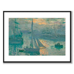 Plakat med det vakre maleriet Sunrise laget i 1872-1873 av Claude Monet - en historisk kjent fransk kunstner. Motivet er industrihavnen Le Havre på den nordlige kysten av Frankrike.