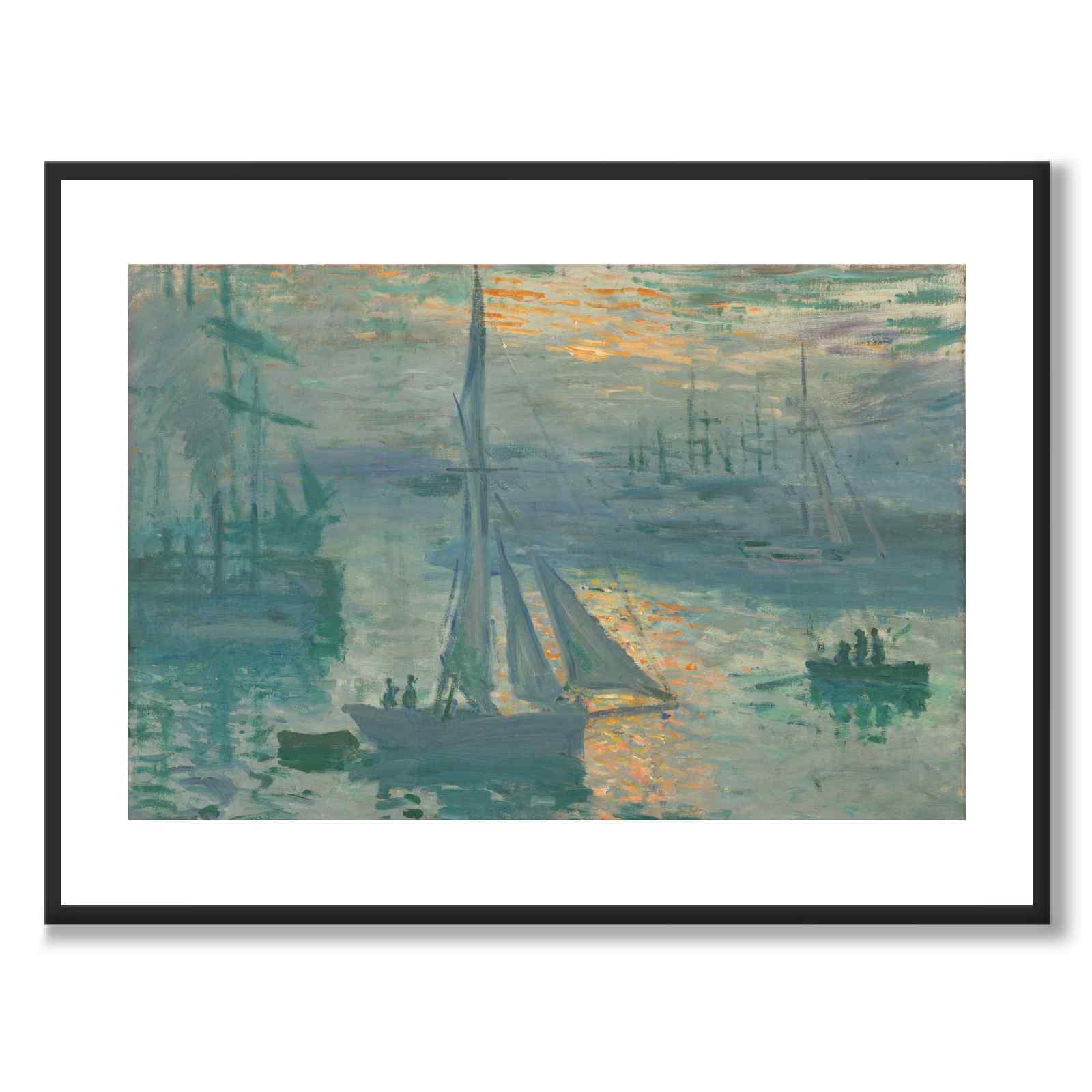 På bildet ser vi en strålende oransje soloppgang som glitrer på det gråblå vannet. Knapt skjellig gjennom en kjølig dis ser vi båter rundt seilbåten i midten av bildet. Malt våren 1873, da landet slet med å gjenoppbygge etter den fransk-prøyssiske krigen, kan denne soloppgangen være en metafor for en ny dag som gryer i Frankrike.