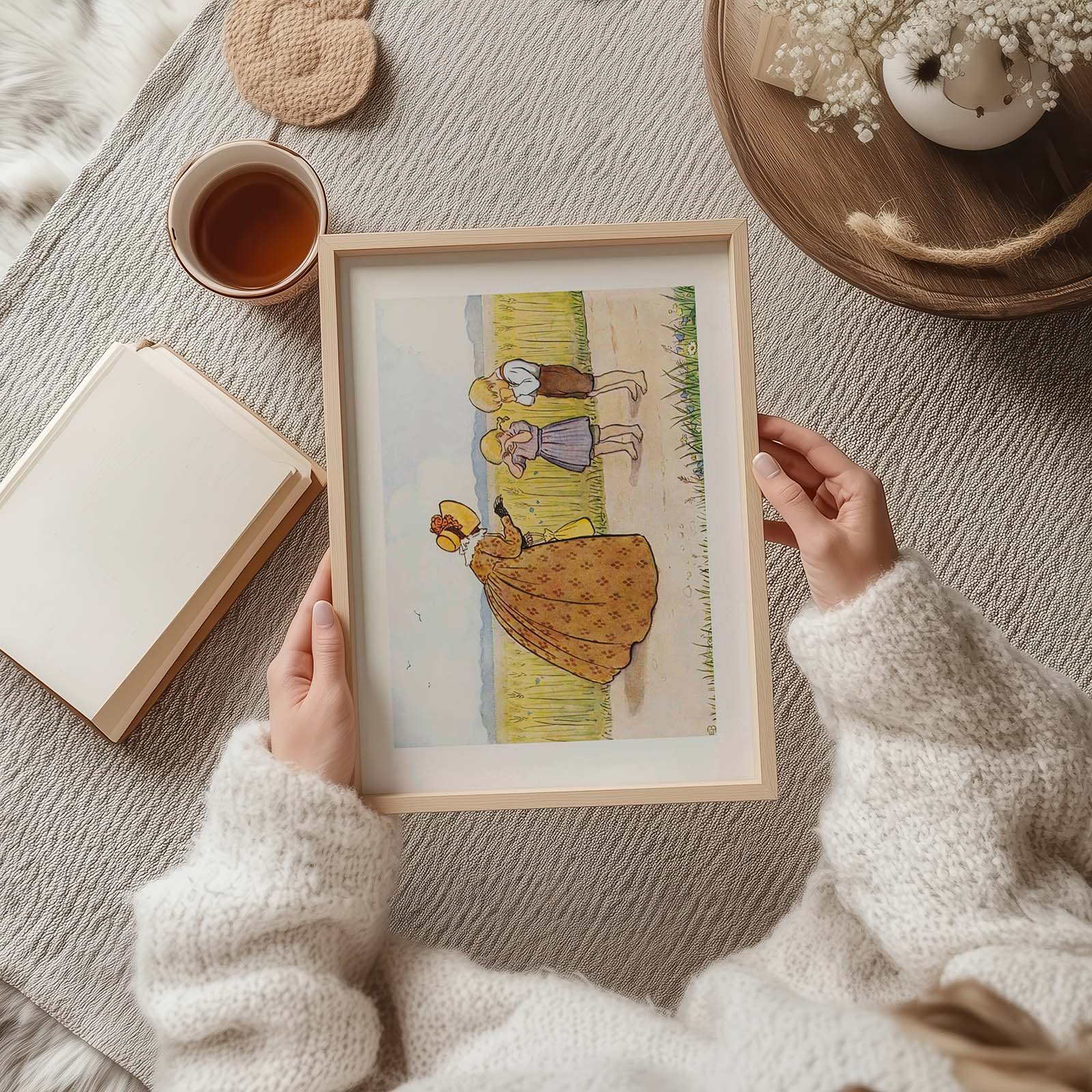 En vakker illustrasjon fra Elsa Beskows barnebokserie "Tant Grön, Tant Brun och Tant Gredelin" , først utgitt i 1939.