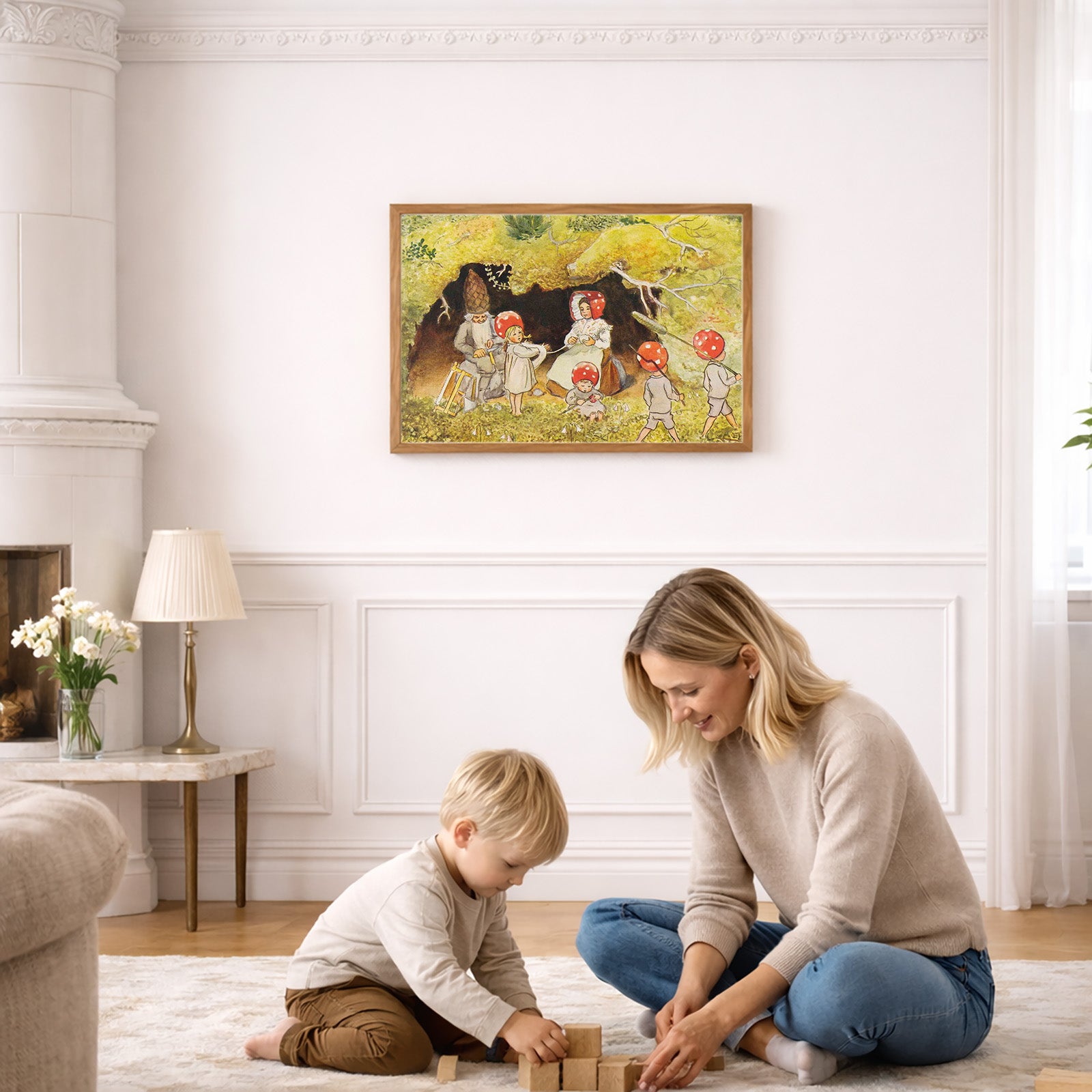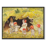 Plakat med illustrasjon fra en av Sveriges mest elskede barnebøker gjennom tidene: Tomtebobarnen av Elsa Beskow fra 1910.