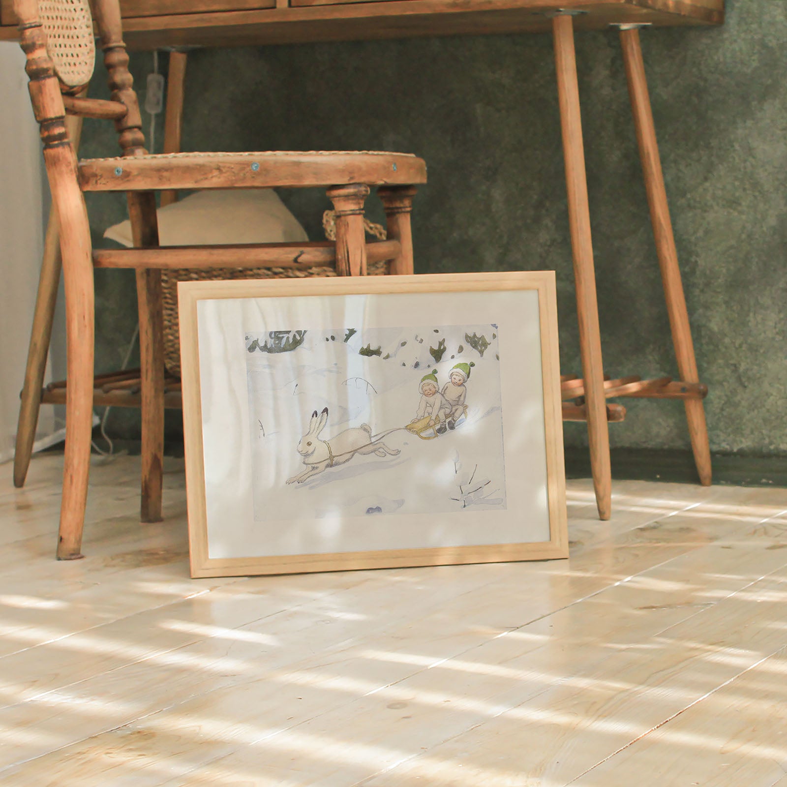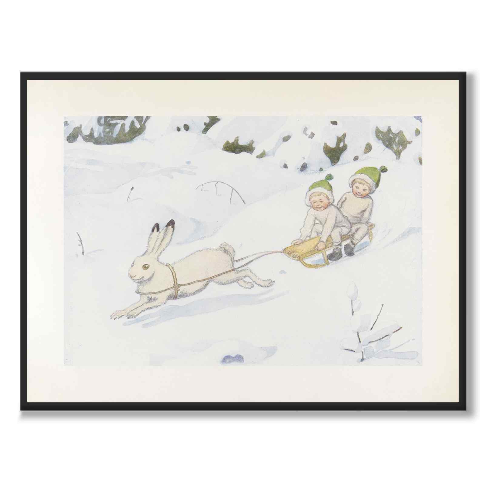 Plakat med illustrasjon fra en av Sveriges mest elskede barnebøker gjennom tidene: Tomtebobarnen av Elsa Beskow fra 1910.