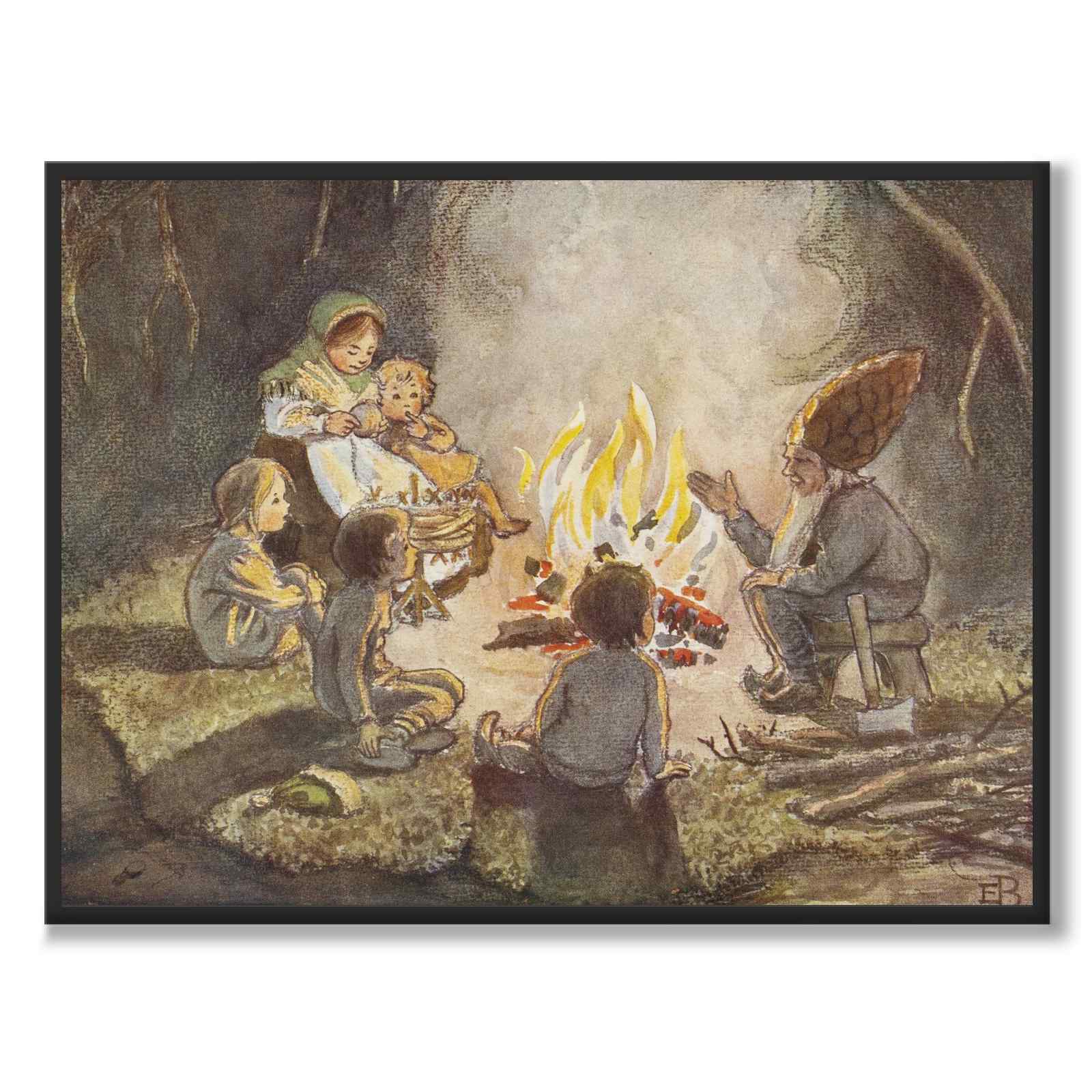 Plakat med illustrasjon fra en av Sveriges mest elskede barnebøker gjennom tidene: Tomtebobarnen av Elsa Beskow fra 1910.