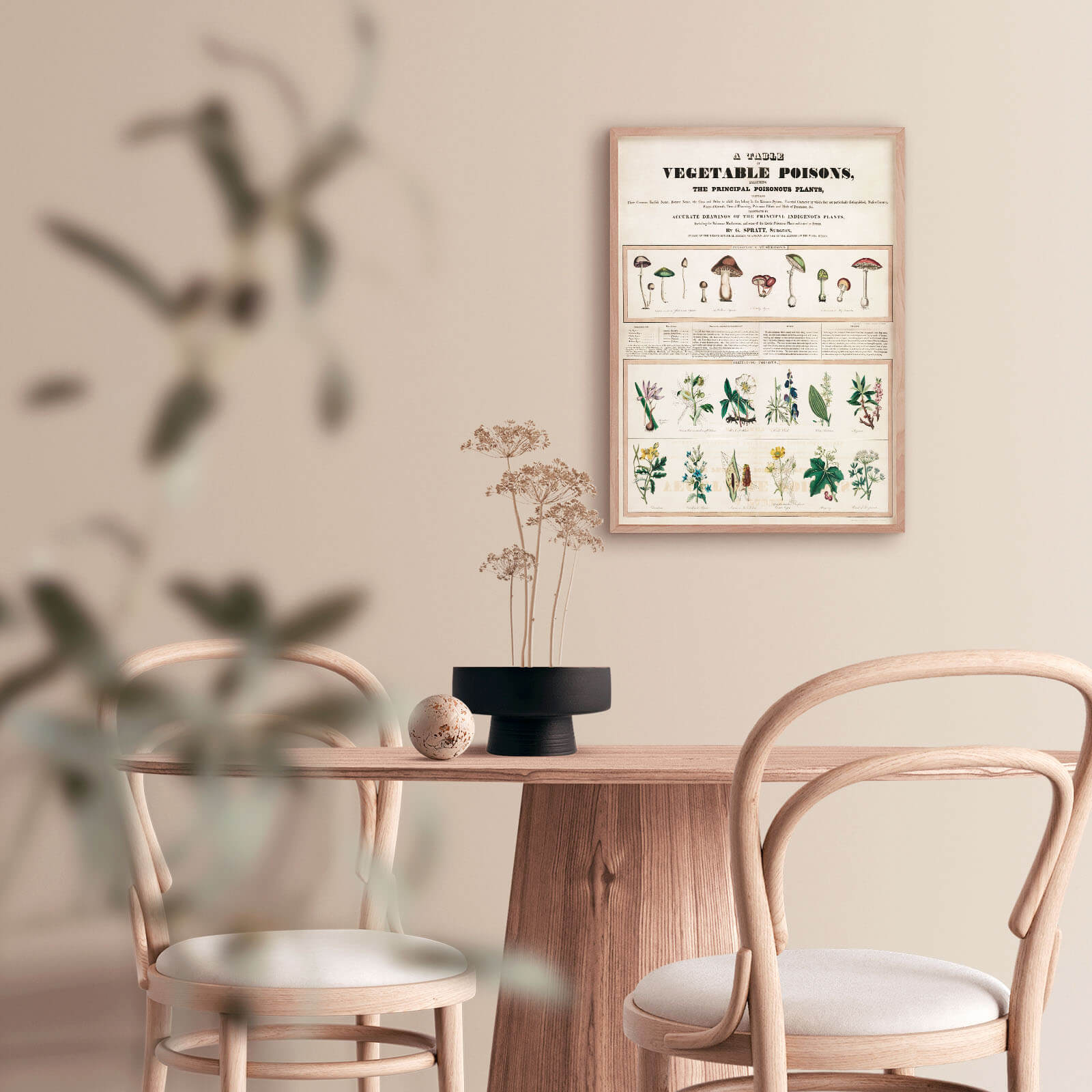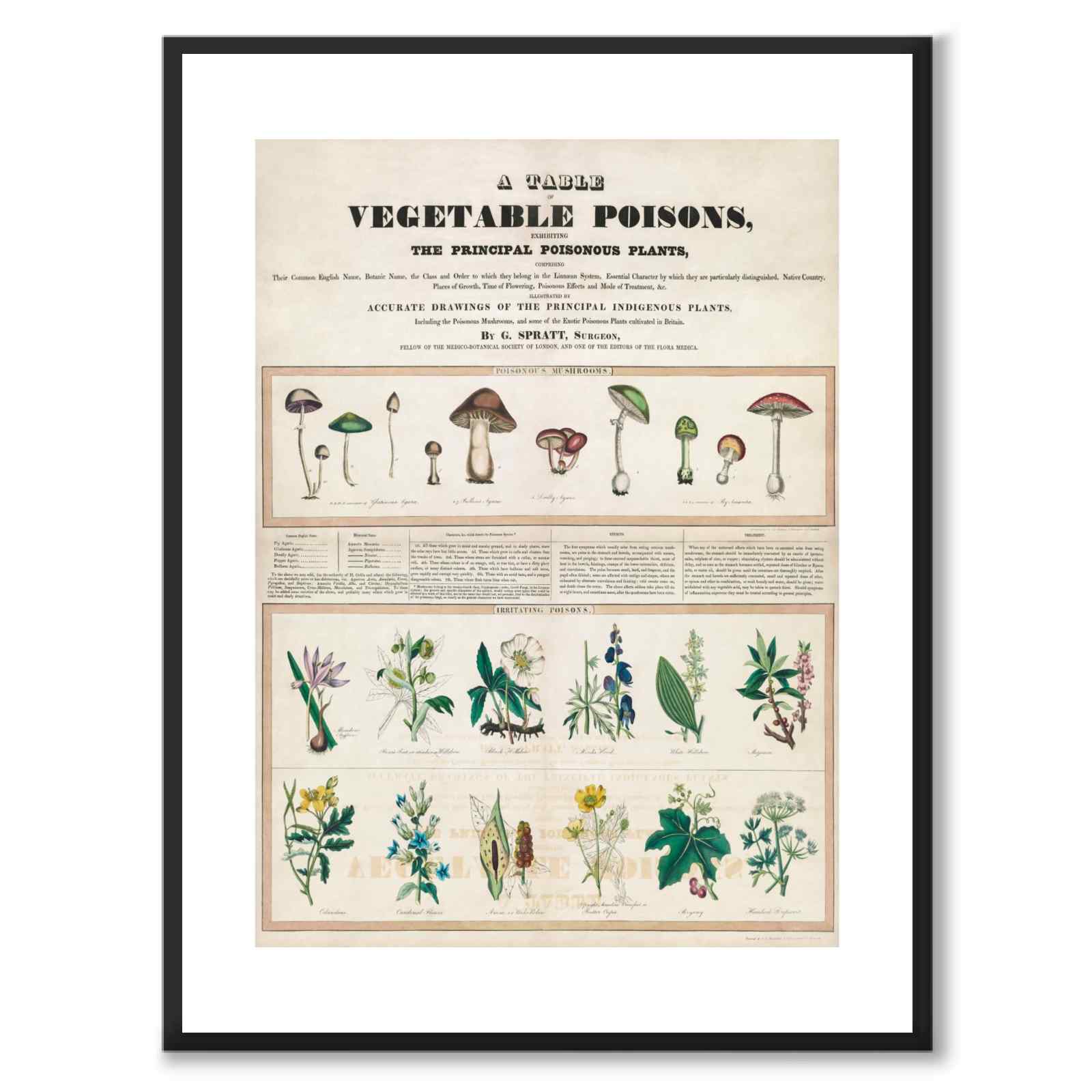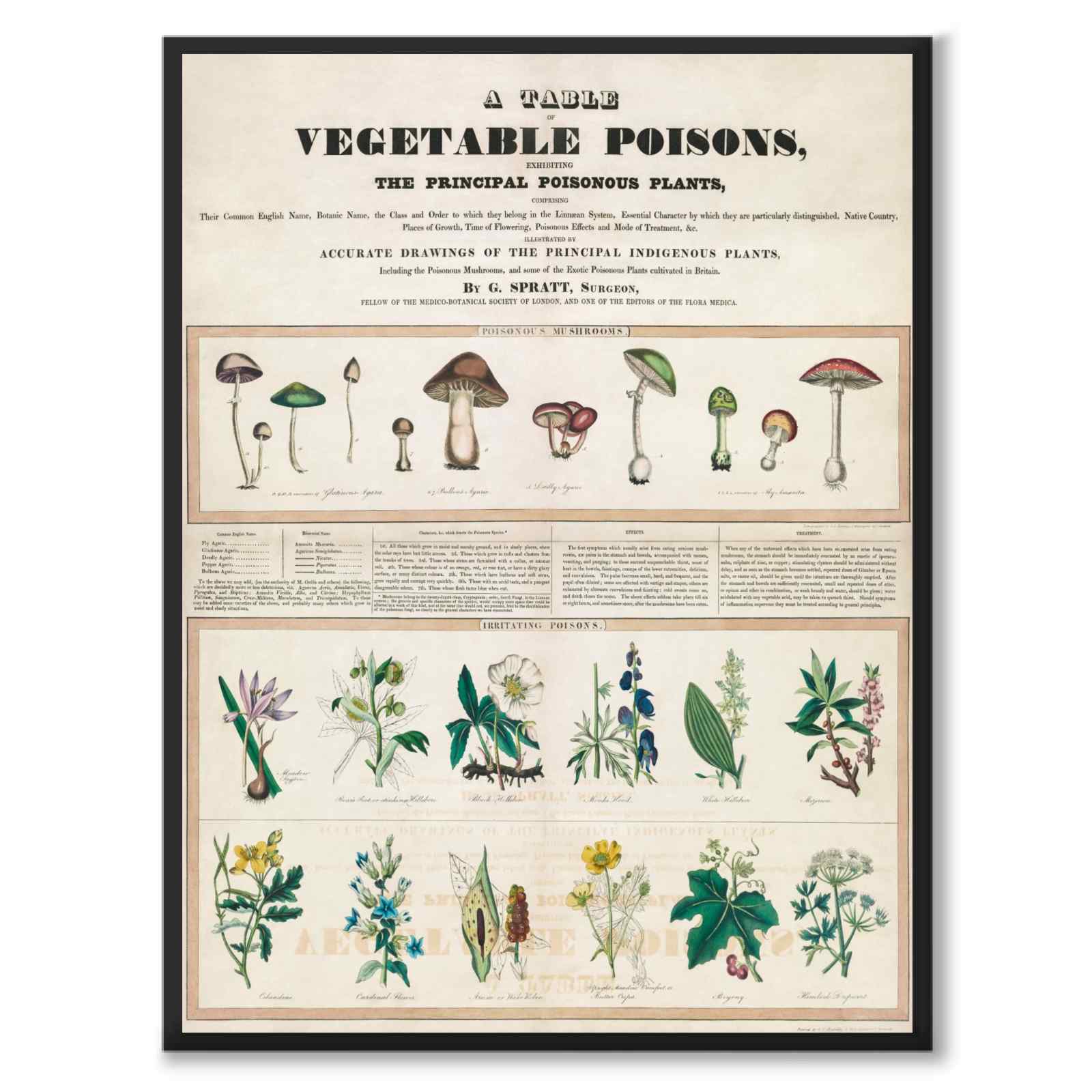 Plakat med en klassisk, engelsk skoleplakat med giftig sopp og planter. Illustrasjonen ble tegnet på 1840-tallet av George Edward Madeley.