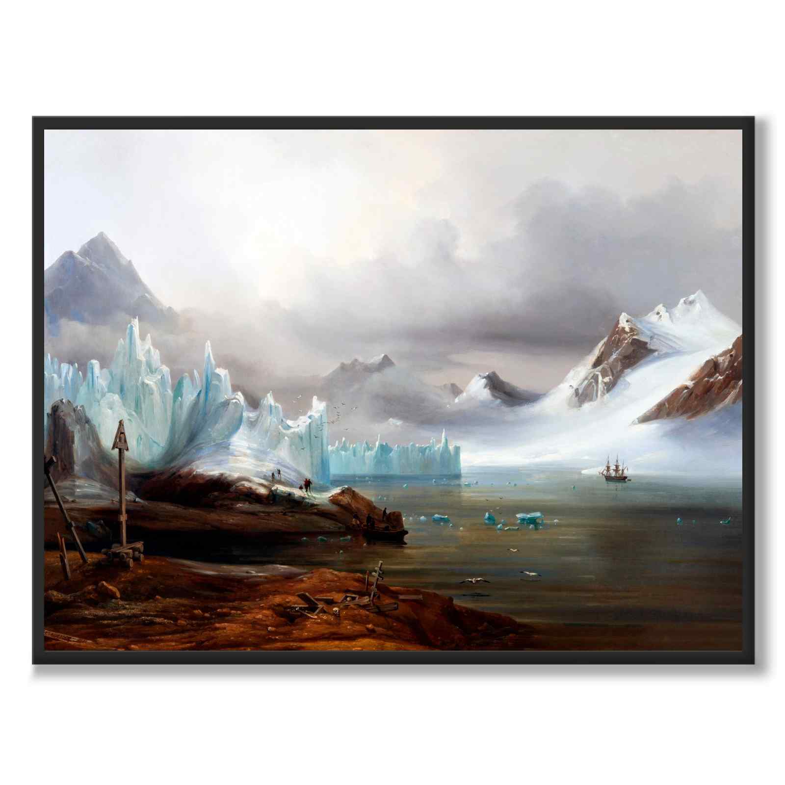 Norges nordligste del; Svalbard. Verket ble malt på 1800-tallet av den franske kunstneren Auguste Mayer (1805-1890) og viser Spitsbergens vakre strand- og brelandskap.